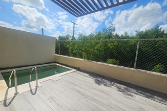 A pocos metros de Downtown 3 habitaciones 2 baños Medio baño de visita Area de lavado Cuarto de servicio Nueva a estrenar Jacuzzi privado Seguridad 24 horas Residencial con piscina y área sociales 1,200 vacía 1,500 con línea blanca