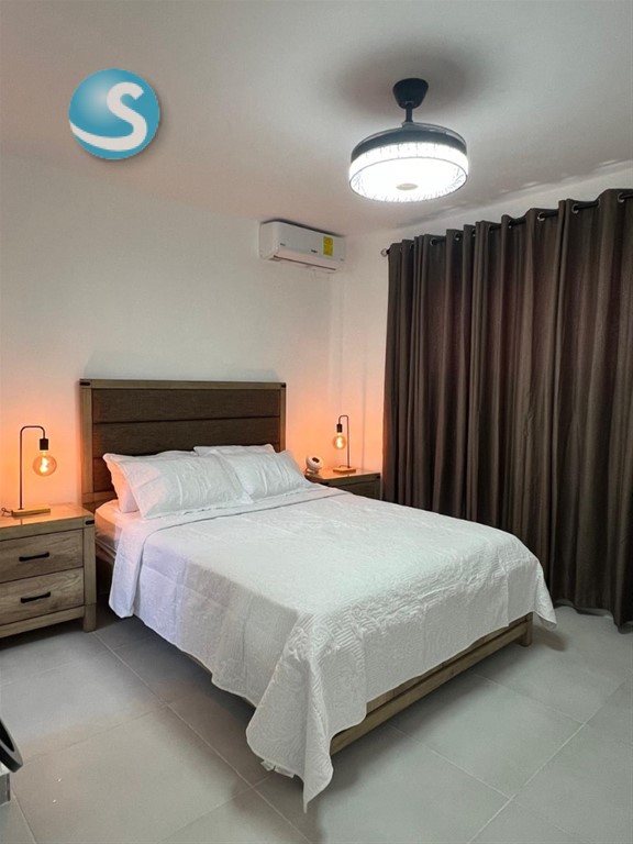 CASA AMUEBLADA Ciudad del Sol, Bávaro, Punta Cana. A 4 mins. de Hospiten, próximo a colegio, universidad, supermercados, gimnasio. - 180m2 de solar y 80 m2 de construcción - 2 habs, 2 baños, 2 parqueos, cocina concepto abierto, sala-comedor, área de lavado AMENIDADES: Piscina Cancha de Baloncesto Área de juegos para niños Gimnasio Terraza techada frente a la piscina Seguridad 24/7 Control de acceso AirBnb Friendly Año de construcción 2024 US$140,000 amueblada US$120,000 sin mobiliarios Mantenimiento US$50.00