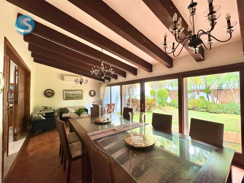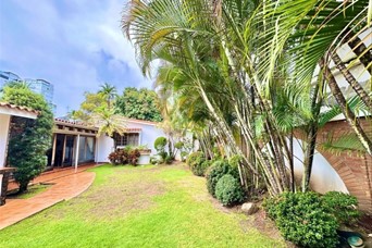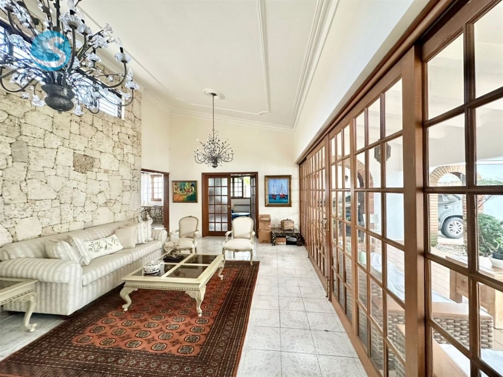 500 m2 netos. 1000 m2 de solar. Seis (6) parqueos. Cuatro (4) habitaciones. 3.5 baños. Dos (2) salas. Comedor separado. Comedor exterior techado. Cocina. Terraza techada. Jardin con horno a leñas. Área de lavado. Habitación de servicio. *Tiene planta eléctrica. *PRECIO DE ALQUILER: US$ 7,500.00