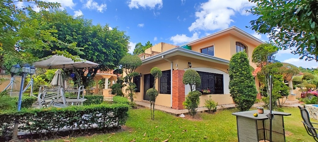 Descubre esta impresionante casa en BONAO. Con 339 metros cuadrados de construcción en 2 niveles y 1164 metros cuadrados de terreno, esta propiedad ofrece un espacio amplio y cómodo. Cuenta con 3 habitaciones, 2.5 baños y espacio para 4 vehículos. Disfruta de sus múltiples áreas como galería, balcón, recibidor, sala, , comedor, cocina, desayunador, family room, escalera, gazebo, BBQ, patio, jardín, portón eléctrico. Ideal para vivir o desarrollar proyecto de apartamentos. Déjate impresionar por todo el espacio y área verde de esta propiedad! JH