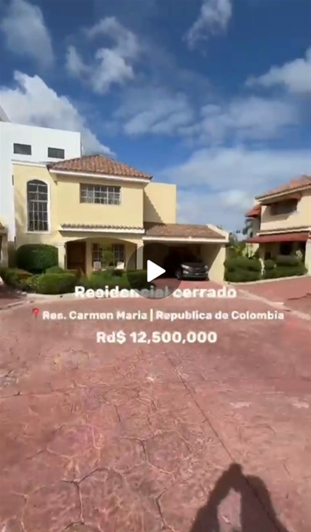 Codigo: 6246 S.E ??Carmen María Venta RD$12,500,000 3 habitaciones 2 1/2 baños Sala Comedor Cocina con desayunador Estudio Cuarto de servicio con baño Área de lavado Patio Marquesina para 2 vehículos Jardín Cisterna y tinaco Residencial cerrado