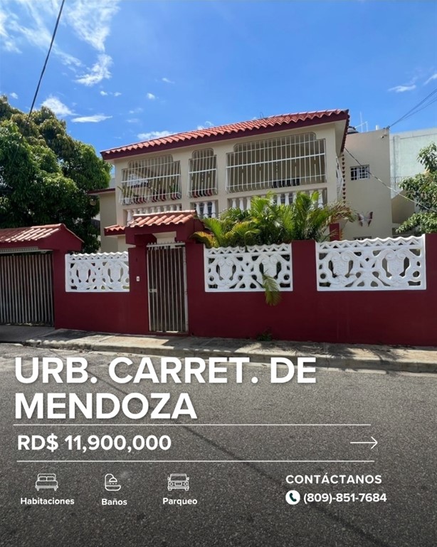 ?? Casa en Venta en Urb. Carretera de Mendoza ??11,900,000.00 Tamaño: ??245.30 m²Descripción: Niveles: Dos niveles amplios ?? Áreas Comunes: ?? Marquesina ??? Sala ??? Comedor ?? Cocina ?? Medio baño de visita ?? Área de lavado SEGUNDO NIVEL: ??? 4 habitaciones ?? Star familiar ?? Dos baños Área Lateral: ??? 2 habitación con baño Cocina baño