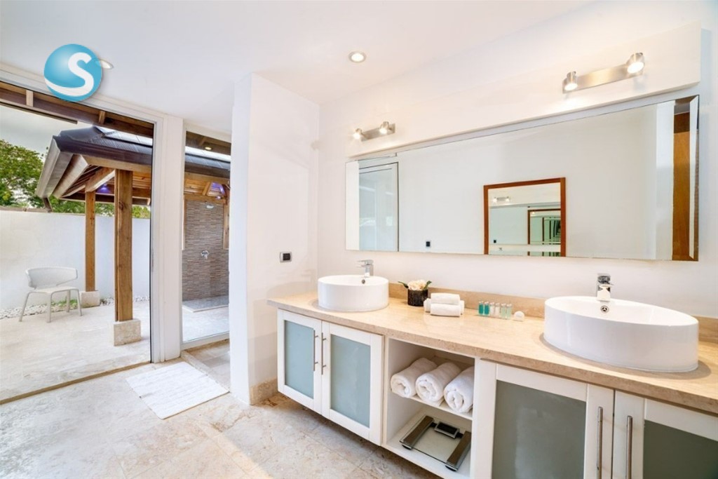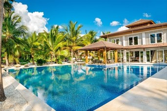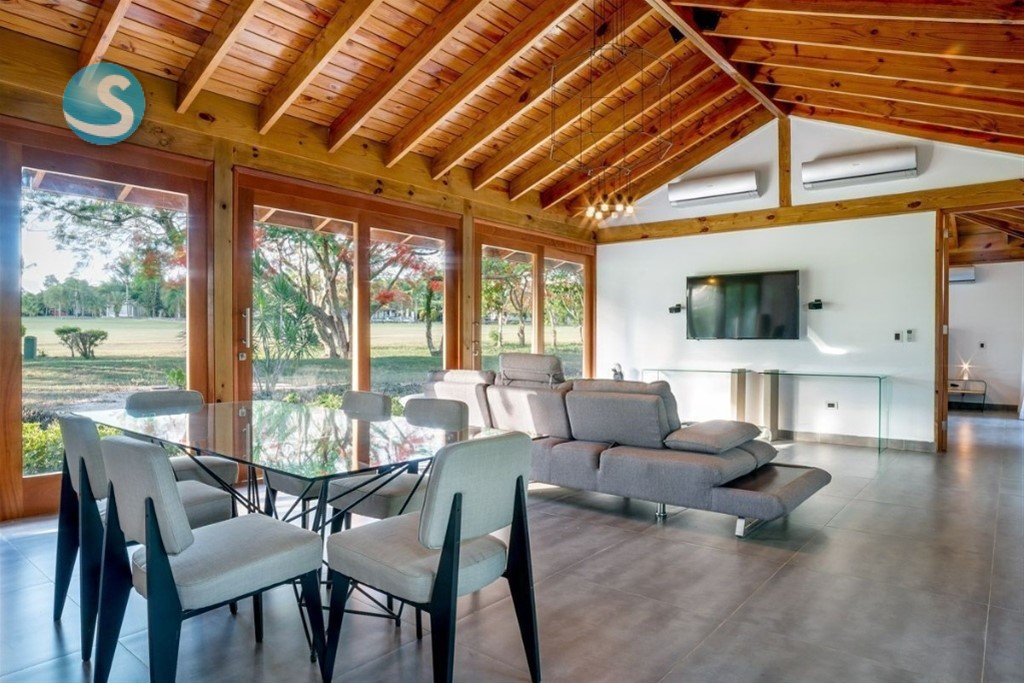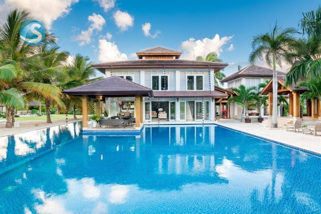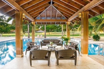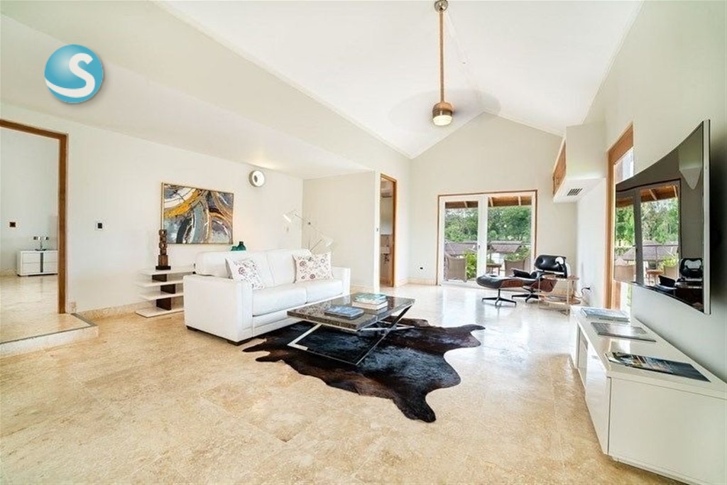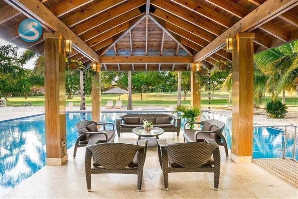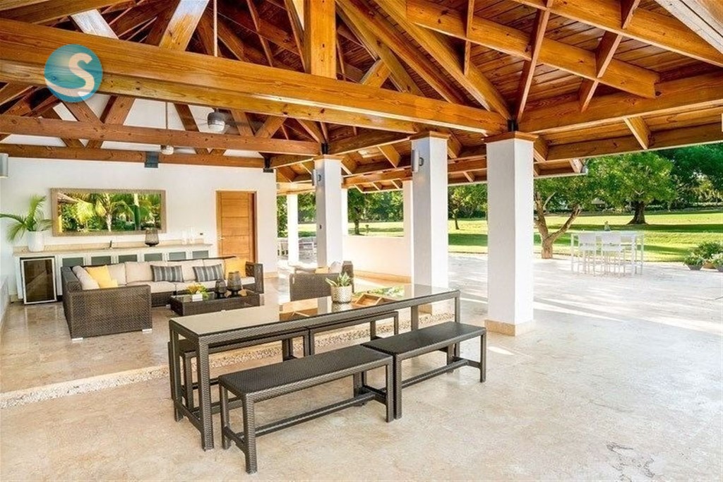 Espectacular Villa amueblada ubicada en Casa de Campo Generales : - Solar : 3,800 Mts2. - Construcción : 1,606.00 Mts2. - ?Dos (2) Niveles. - ?Ocho (8) Habitaciones (2 Master y 6 Secundarias. - ?Nivel Soterrado para Área de Servicio con tres (3) habitaciones con baño, w/c y foso de ventilación c/u, kitchenaid y comedor. - ?Dos (2) Cocinas. - ?Seis (6) Áreas de Salas. - ?Dos (2) Áreas de Comedor. - ?Piscina. - ?Jacuzzi. - ?Dos (2) gazebos. - ?Marquesina principal techada para 4 Vehículos. - ?Dos (2) Marquesinas auxiliaries techadas para dos (2) vehículos cada. - ?Área Soterrada para equipos de piscina y tratamiento de agua. - ?Amplios jardines en sus 4 laterales. Distribución : 1er. Nivel : - Recibidor a doble altura. - ?Gran salón a doble altura con tres (3) ambientes de salas. - ?Salón de Juegos y TV. - ?Sala Formal. - ?Comedor Formal. - ?Comedor Informal integrado a la cocina fría. - ?Cocina fría. - ?Cocina Caliente. - ?Dos Habitaciones secundarias c/u con Walking Clóset, Baño y Balcón. - ?Baño de Visitas Interior. - ?Baño de Visitas Exterior. 2do. Nivel : - Cuatro (4) habitaciones secundarias c/u con Walking Clóset, Baño y Balcón. - ?Dos (2) Habitaciones Máster c/u con Walking Clóset, Baño y Balcón con vista al campo de golf Diente de Perro. - ?Sala Informal con vista al campo de golf Diente de Perro. - ?Gimnasio completamente equipado TechnoGym. Equipamiento : - Aire Acondicionado tipo VRF de alta eficiencia en todas las áreas de la Propiedad. - ?Línea Blanca en cocinas. - ?Equipos del gimnasio de la marca TechnoGym. - ?Barandas exteriores con vidrio de 20 mm de espesor, resistente a altos impactos. - ?Equipos de piscina de la marca Paintair. - ?Sistema Osmosis para tratamiento de toda el agua en baños, cocinas y para consumo. - ?Sistema de seguridad automatizado. - ?Portón automático. - ?Intercom. Terminación : - Paredes y columnas Exteriores revestidas en piedra coralina. - ?Pisos Exteriores en piedra coralina. - ?Piso interior en Mármol Travertino. - ?Madera tipo roble en puerta y ventanas. - ?Techos en madera tipo americano, tratado y cepillado. - ?Walking Clóset revestidos en madera tipo cedro. - ?Baños revestidos en Mármol. - ?Topes de cocinas en piedra cuarzo. - ?Tejas europeas de la marca Borjas. - ?Mobiliario y Accesorios Interiores y Exteriores de Restoration Hardware (RH).