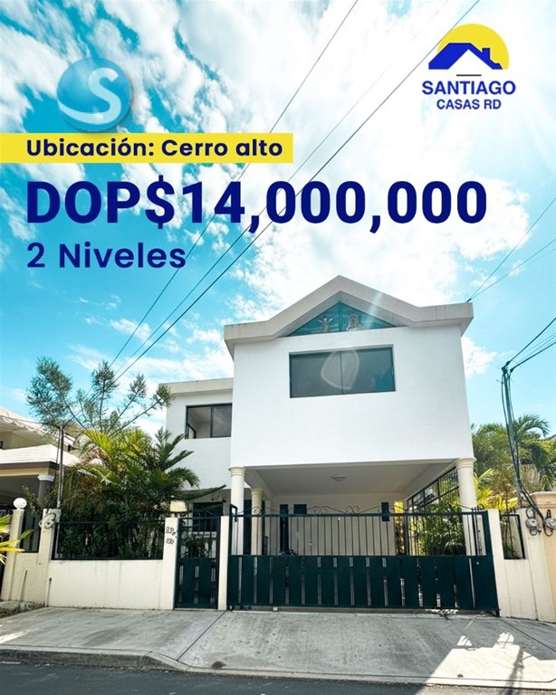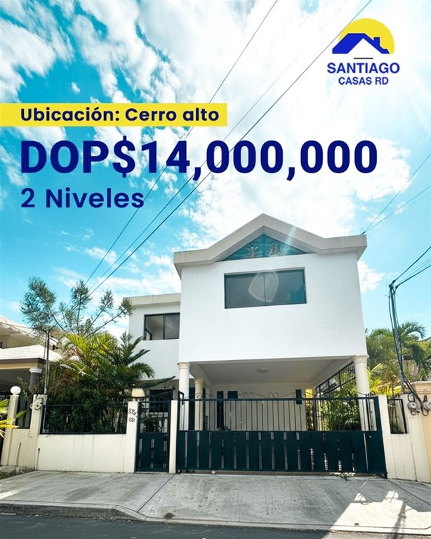 Casa en venta – Cerro Alto, Santiago Propiedad amplia y funcional con terminaciones en caoba y mármol, ubicada en zona residencial privilegiada Características: - Terreno: 161 m² - Construcción: 260 m² Distribución – Primer nivel: - Galería - Marquesina doble - Portón corredizo - Sala con puerta principal en caoba - Comedor con vista al patio - ½ baño para visitas - Cocina con meseta en granito y gabinetes en caoba - Despensa en caoba para alimentos - Piso en cerámica - Cuarto de servicio con baño - Lavadero en granito - Patio Distribución – Segundo nivel: - Escalera en mármol con pasamanos en caoba - Ante sala - Terraza con 5 ventanales y puerta en caoba - Despensa en caoba para ropa blanca - 3 habitaciones con puertas en caoba - Habitación principal con baño y vestidor - Habitaciones secundarias con clósets en caoba - Despensa adicional para ropa - Baño común con ventanal y puerta en caoba - Otro baño común - Piso en cerámica Precio de venta: RD$14,000,000 Más información: 829-470-1184 Jean Carlos Rodriguez