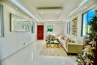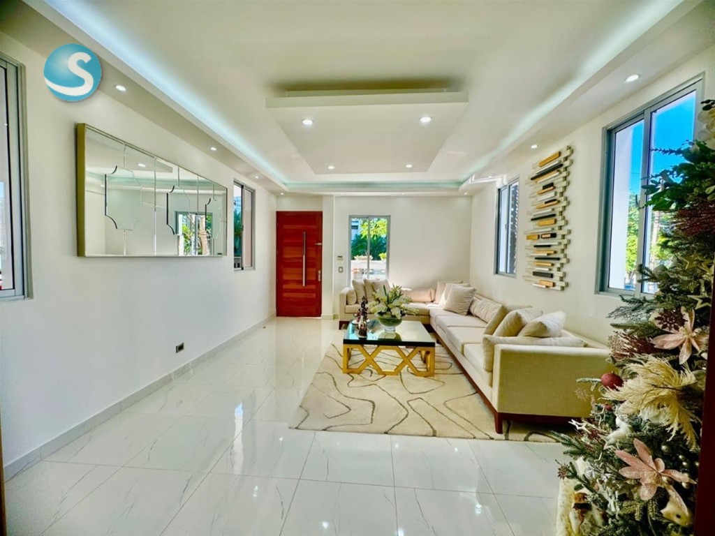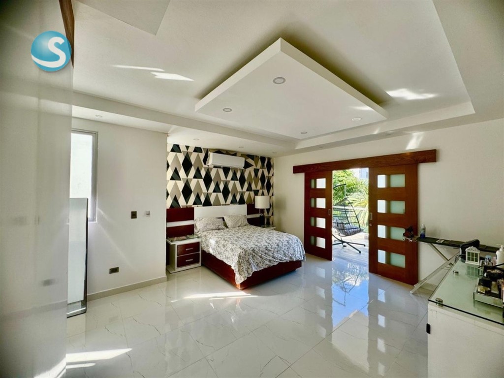 Casa moderna de lujo en Cerro Alto – 3 niveles | Rooftop con jacuzzi | Terminaciones premium Hermosa y exclusiva casa moderna, estratégicamente ubicada en el prestigioso sector Cerro Alto, diseñada para ofrecer confort, elegancia y una experiencia residencial de alto nivel. Construida sobre un solar de 288 metros y con 390 metros de construcción distribuidos en tres niveles, esta propiedad combina amplitud, funcionalidad y acabados de primera calidad. Distribución y espacios: Galería Recibidor Sala formal Sala - comedor Cocina fría moderna y elegante Cocina caliente independiente 4 habitaciones, cada una con su baño privado y walk-in closet Habitación de servicio 4.5 baños Marquesina para 4 vehículos Área social: Rooftop con jacuzzi y vista panorámica 360°, ideal para reuniones, relajación y momentos de entretenimiento. Terminaciones y detalles: Madera en roble Pisos en porcelanato Griferías y cerraduras de gama alta Baños importados Intercom Sistema de cámaras de vigilancia Sistema de alarma Esta propiedad destaca por su diseño contemporáneo, calidad en terminaciones y ubicación privilegiada, perfecta para familias que buscan comodidad, seguridad y exclusividad. Precio: RD$25,000,000 Negociable Para más información 8097713486