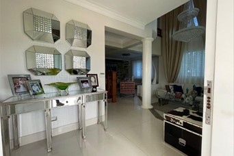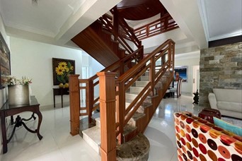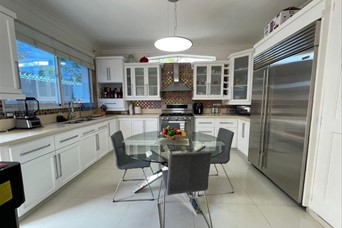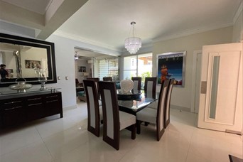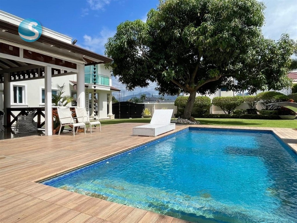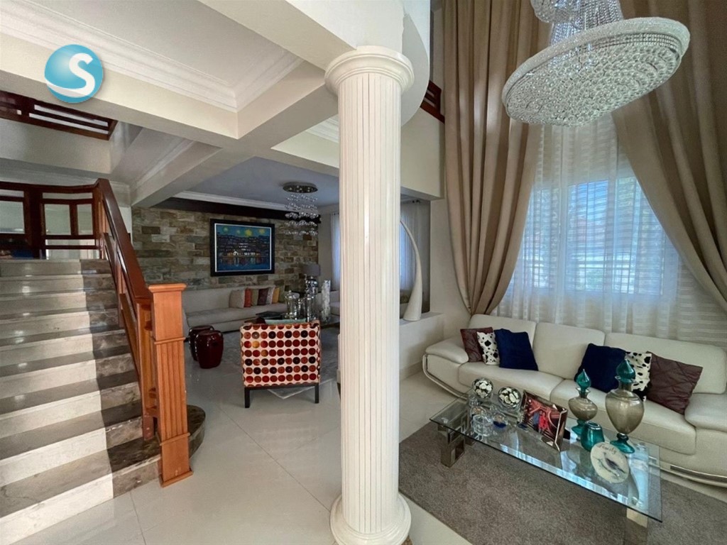 Casa de lujo en venta en Cerro Alto Diseño moderno, gran solar, piscina climatizada y paneles solares Exclusiva residencia ubicada en Cerro Alto, uno de los sectores más seguros y prestigiosos de Santiago, ideal para quienes buscan privacidad, amplitud y alto nivel de confort. La propiedad cuenta con un impresionante solar de 1,480 m² y 420 m² de construcción, perfectamente distribuidos en dos niveles, combinando elegancia arquitectónica con funcionalidad. Distribución general: Edificación de 2 pisos Recibidor Sala formal Sala comedor Cocina fría amplia y elegante Cocina caliente independiente Terraza abierta ideal para actividades sociales 2.5 baños de visitas 4 habitaciones, cada una con baño privado y walk-in closet Habitación principal con doble vestidor y balcón privado Marquesina para 8 vehículos Amplio patio Piscina con climatizador Características y terminaciones: Pisos en porcelanato Madera preciosa en roble Grifería y cerraduras de alta calidad Baños de excelente terminación Sistema de paneles solares Sistema de ósmosis Cisterna y bomba de agua Sistema de alarma Cámaras de seguridad Portón eléctrico Residencial seguro y tranquilo Financiamiento disponible. Precio de venta: US$930,000 Una propiedad diseñada para quienes valoran el lujo, la comodidad y la exclusividad en una de las mejores zonas residenciales de Santiago.