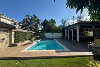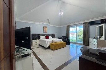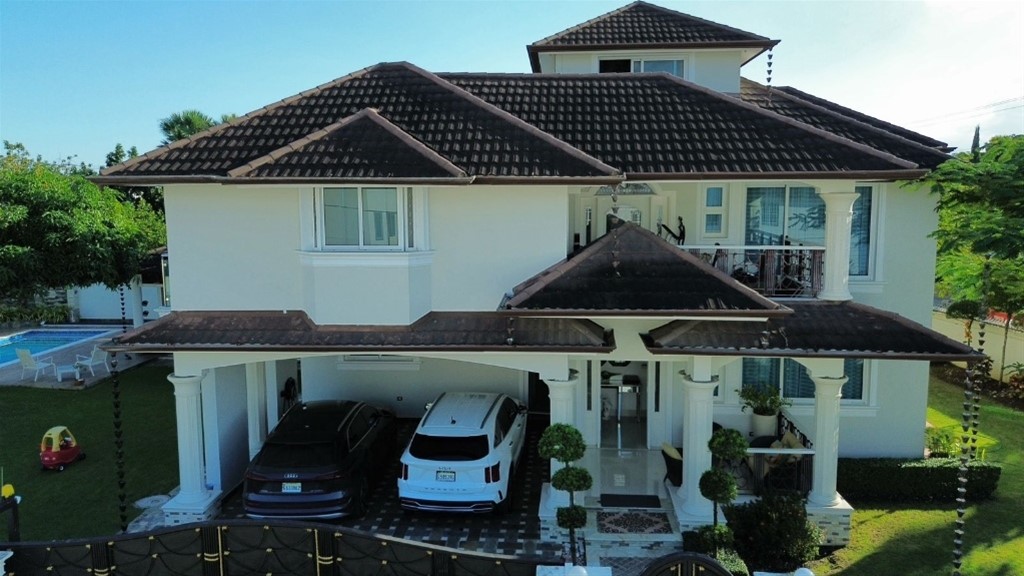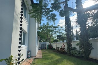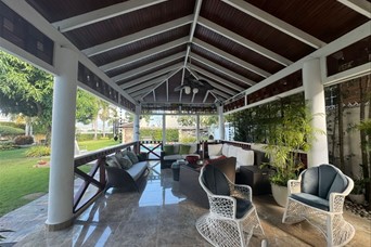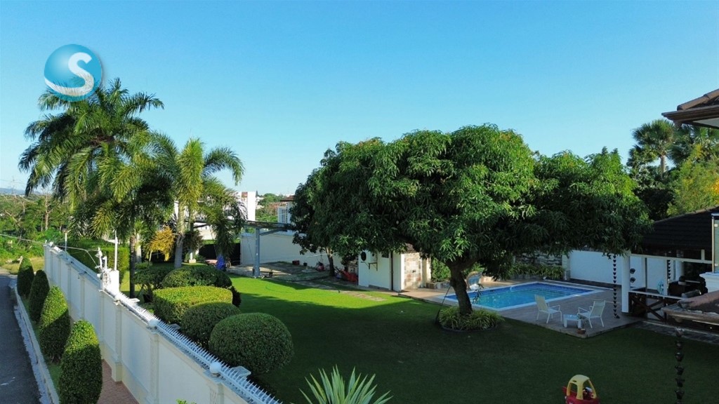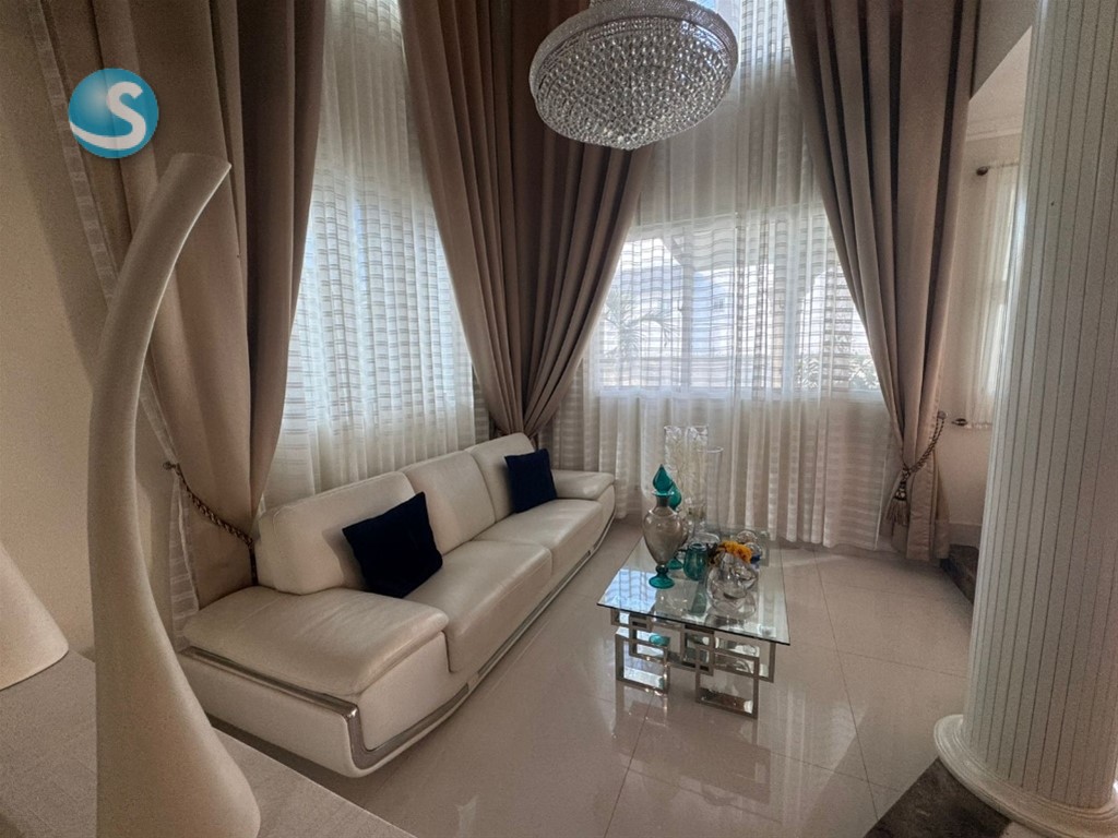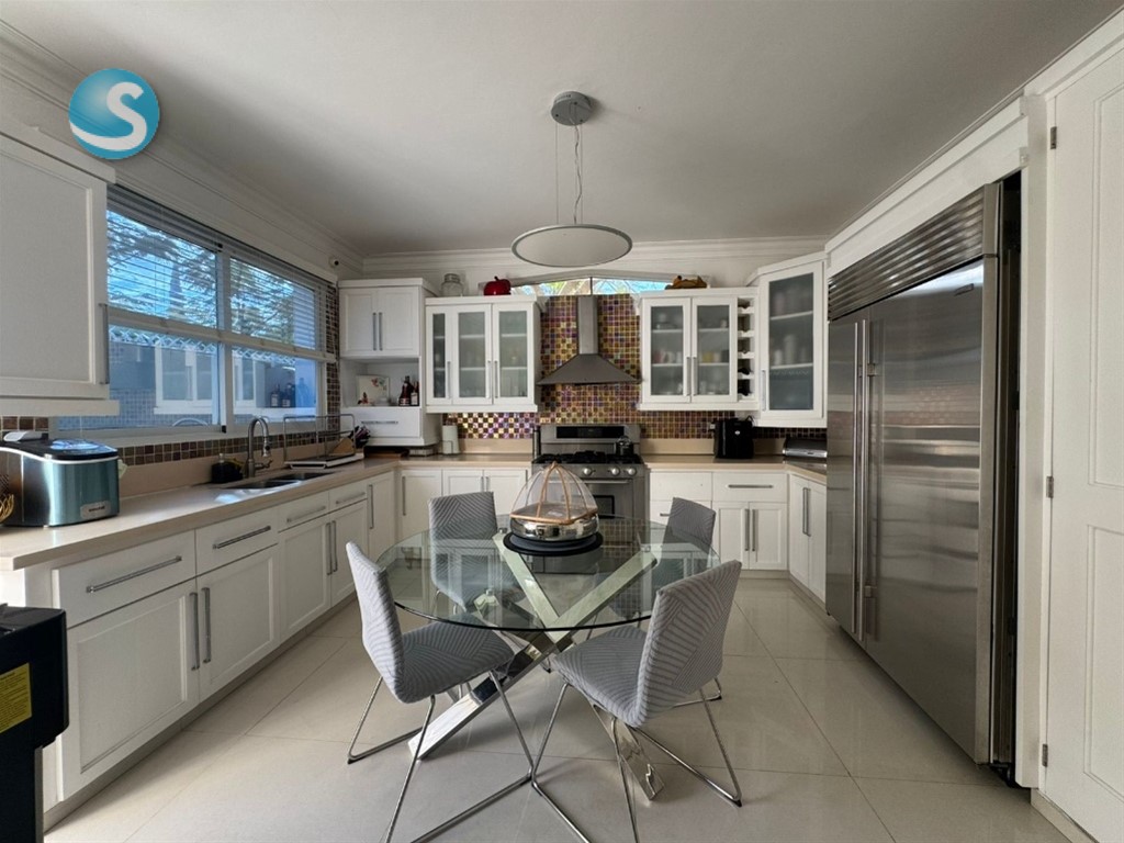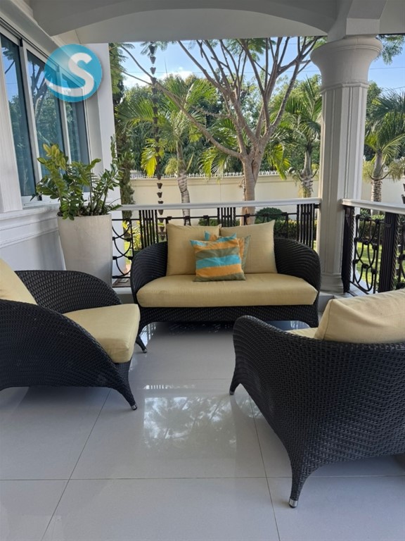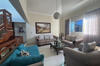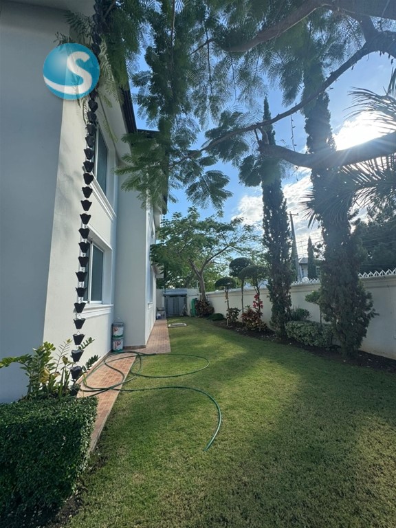 CASA DE LUJO EN VENTA Descripción Impresionante residencia con una de las jardinerías más hermosas de la zona, diseñada para quienes valoran la amplitud, elegancia y confort en cada espacio. Distribución La propiedad cuenta con una acogedora galería, sala formal con recibidor, amplia sala comedor y una elegante escalera revestida en mármol y madera que aporta distinción al ambiente. Dispone de una moderna cocina, sala de estar climatizada, terraza ideal para el entretenimiento, amplio patio y una atractiva piscina. La marquesina tiene capacidad para 8 vehículos, brindando comodidad y funcionalidad. En el segundo nivel se encuentran 5 habitaciones, cada una con su baño privado. La habitación principal incluye walk-in closet y balcón, además de una sala familiar con acceso a balcón. Dimensiones 740 m² de construcción 1,237 m² de terreno Terminaciones y equipamiento Madera en caoba centenaria Pisos en porcelanato Grifería y cerraduras de alta gama Cisterna con bomba de agua Sistema de alarma Cámaras de vigilancia Intercom Cerco eléctrico Portón eléctrico Precio US$900,000