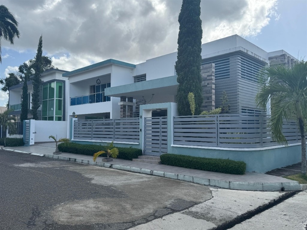 ULTRA PROPIEDADES RD, TE PRESENTA: CASA EN VENTA, RESIDENCIAL CERRADO EN GURABO, SANTIAGO , ESTANCIA ELIANNE. Espaciosa y ubicada en un exclusivo residencial cerrado con seguridad. Ideal para quienes buscan una propiedad con diseño contemporáneo, privacidad y excelente ubicación. Características Principales Ubicación en Gurabo, Santiago de los Caballeros. Residencial cerrado con acceso controlado. Diseño arquitectónico moderno. Entorno ajardinado y tranquilo. A minutos de avenidas principales, supermercados, colegios, restaurantes y centros comerciales. Distribución de la Casa – Dos Niveles: Primer Nivel: - Marquesina con capacidad para 4 vehículos. - Sala principal con doble altura y diseño en sheetrock. - Cocina fría con isla central, gabinetes en madera de roble y revestimiento decorativo. - Dos cocina caliente independiente. - Medio baño para visitas. - Jardín exterior. - Estar familiar / comedor. - Habitación de visita con baño privado y walk-in closet. - Habitación de servicio con su baño. - Área de terreno: 495.81 m². - Área de construcción: 486.10 m². Segundo Nivel: - Tres habitaciones con baño privado y walk-in closet cada una. - Family room o sala de estar. - Balcón. - Medio baño adicional Detalles Técnicos y Terminaciones. - Cuatro habitaciones más habitación de servicio. - Puerta principal en madera de roble. - Cocina equipada con gabinetes en roble e isla central. - Ventanas corredizas en aluminio. - Tope de cocina en granito. - Diseño interior con detalles en piedra natural. - Pisos en porcelanato. - Lavamanos flotantes con mueble. - Sistema de seguridad con cámaras e intercom. - Calentador de agua y cisterna. Ubicación Estratégica: Residencial privado en Gurabo. A pocos metros de la Av. Gregorio Luperón. A 5 minutos de la Circunvalación Norte. Cercano a centros educativos, supermercados, bancos y comercios. Precio: RD$25,500,0000 Negociable. Facilidad de financiamiento con tasa preferencial. Cdg:1306. Contáctanos para agendar una visita y recibir más información.