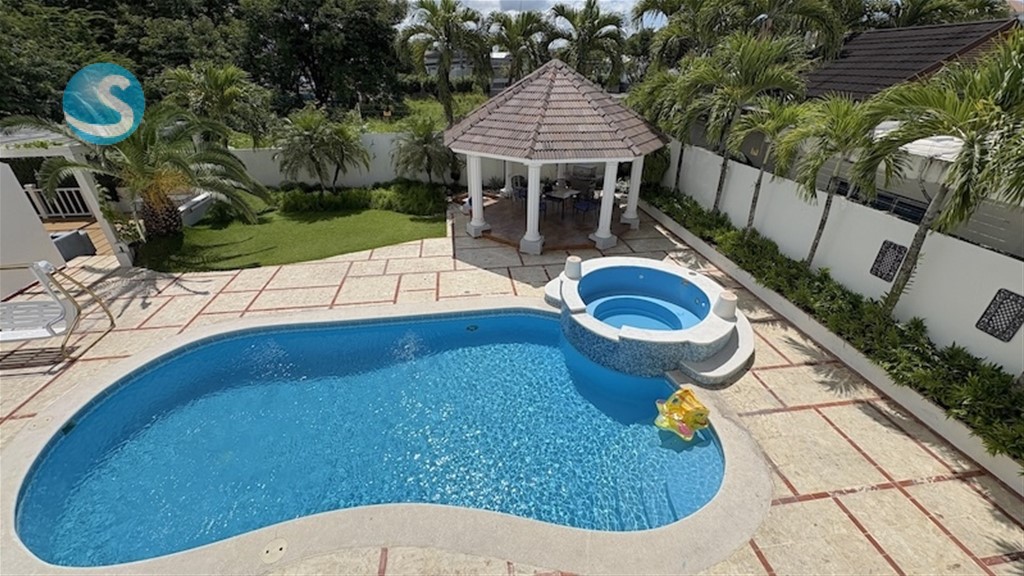 VENTA CASA EN SANTIAGO -LOS CERROS DE GURABO. CUATRO HABITACIONES. US$700,000 Visita esta atractiva propiedad en unos de los mejores sectores de Santiago. El Residencial Casilda en los Cerros de Gurabo . Amplia Residencia en de 4 habitaciones ideal para familias numerosas. Hermoso Patio social con Piscina y Gazebo. 373 m2 de construcción 900.04 m2 de solar PRIMER NIVEL ? Gran frente con área de marquesina para mas de 4 ó 5 vehículos ? Recibidor ? Sala ? Estar ? Comedor ? Patio con Piscina y Jacuzzi ? 2 medios baños para visita . Uno en el área de la piscina. ? Amplia terraza techada y cerrada su con baño en el área de la piscina, orientada para cuarto de musica y actividades sociales. ? Gazebo abierto frente a la piscina ? Deck social ? Sótano de múltiple uso ? Cocina con desayunador ? Cuarto de servicio y baño. ? Área de lavado ? Cuarto de herramientas SEGUNDO NIVEL ? 4 Habitaciones . Tres con closet y 1 con walk-in closet ? 2 Baños . Uno en la habitación principal ? Family Room ACABADOS ? Pisos en en granito y cerámica ? Ventanas corredizas de aluminio y crital. Proyectadas y celosías en cristal ? Puertas en caoba ? Tope de cocina en granito ? Gabinetes de cocina en caoba ? Cerco electrico ? Sistema de alarma ? Doble altura en 2do. nivel de la casa ? Sistema de Cámara ? Cisterna y Bomba PRECIO: US$700,000 ID: EB-TC0197 Más imágenes en : https://www.hazimrodriguez.com/property/venta-de-residencia-en-los-cerros-de-gurabo-santiago-cuatro-4-habitaciones?agent=belkis0 Síguenos en instagram: https://www.instagram.com/inmobiliariahazimrodriguez/