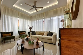 CASA DE DOS NIVELES, UBICADA EN RESIDENCIAL CERRADO, SANTO DOMINGO 400 Metros de solar 365 Metro de construcción PRIMER NIVEL Sala Comedor Cocina Sala de estar Habitacion de música con baño Habitacion de servicio con baño Área de lavado Baño de visitas Marquesina para 4 vehículos SEGUNDO NIVEL 3 Habitaciones con baño y woking closet Family Room Closet de ropa blanca Terraza de 70 Mt2 AMENIDADES 4 Aires acondicionados Piscina Jacuzzi con cubierta Entrada digital Medidor de cisterna Cargador de vehículo eléctrico Marquesina revestida en mármol Censores de alarma Puerta principal en roble de 2 pulgadas Llavín de las habitaciones Digital con tarjeta y huella Cuarto de música Luces automatizadas Inodoros suspendidos Cocina con herraje automatizado Salida de agua filtrada en la cocina Cocina marca Blum Alarmas Detectores de humo Intercom Paneles solares Llaves de agua telescópicas Extractor de grasa Calentador ventanas acústicas anti ruido Música con bluetooth Medidor de gas