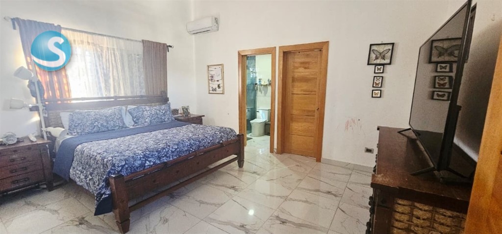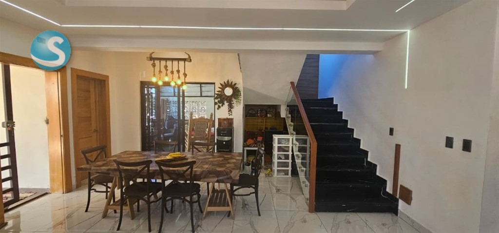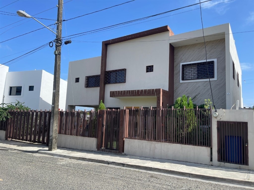 Casa en Colinas del oeste, av. Prolongacion 27,prox. al Bravo, Plaza Paseo 27 Casa en Colinas del oeste, av. Prolongacion 27,prox. al Brabo y Plaza Paseo 27 En el residencial más exclusivo de Sto. Dgo Oeste, con parques, gimnasio, canchas deportivas, supermercado Bravo y plaza paseo 27. Casa de 2 niveles con menos de 5 años de construida. 301 mts de solar y 260 mts de construcción. Descripción 1er nivel: -Amplio jardín frontal y lateral -Sala y comedor espaciosos -Cocina estilo abierto y con mobiliario integrado (estufa, extractor y horno) -Marquesina para 4 vehículos -Cisterna -Área de lavado -Habitación de servicio -Terraza techada -Estudio -Patio -2do nivel -3 amplias habitaciones con su baño y walking closet cada una -1 sala de estar -Puerta de seguridad en el segundo nivel Mantenimiento: 3,000 Seguridad privada del residencial Precio: RD$21,500,000 Ubicación