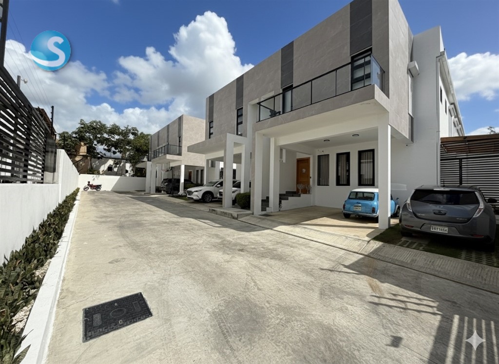 Colinas del seminario, entrando por Carrefour. Casa tipo Townhouse, en proyecto cerrado, tranquilo y exclusivo. Casa con excelentes terminaciones, muy finos acabados y decorada. DETALLES: Primer piso: Sala Comedor Cocina Cocina caliente Área de lavado Cuarto de servicio 1/2 baño Terraza Patio lateral 3 parqueos Segundo Piso: 3 habitaciones c/u con baño Estar familiar Principal con balcón USD 398,000.00 COMODIDADES Y EXTRAS: Techos altos Shutter en la terraza Hierros Cámaras Lámparas Cortinas