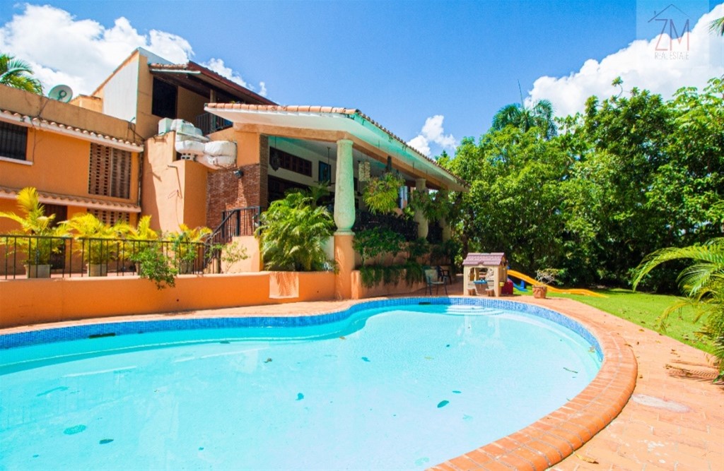 * Casa en venta Cuesta Hermosa II • 1,174 mts2 de terreno • 674.51mts2 de construcción • Vista al Rio y a la vegetación, muy ventilada en zona Residencial de alta seguridad Recibidor Sala comedor Terraza Cocina con Terraza Cocina Caliente con Amplia despensa 4 habitaciones 1-principal con piso Piso Yatova Techo doble altura Con balcón Integrado Área de Gym Baño hab principal muy amplio 2 da habitación Piso Yatova Baño Walkin Closets 3-4 habitación con Baños y vestidor Conectan al área de terraza 2 hab de servicios con su área de baños Área de Sótano Área de lavado Área de Parqueo para 6 vehículos (4 techados) Cisterna 10,000 gl Planta 25 kilos Calentador solar Pozo Área de piscina Área de BBQ Área de patio amplía con grama y arboles frutales Terminaciones: Marmol , coralina ,Yatova,caoba, Porcelanato español.