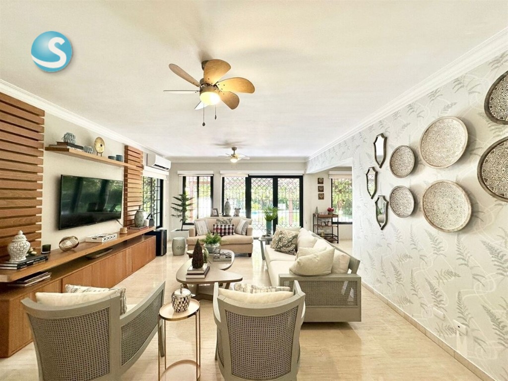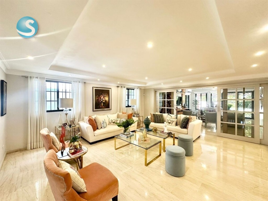 793.93 Mts2 total 515.60 mts2 de construcción Dos (2) niveles 1er nivel : -Recibidor -Estudio -Baño para visitas -Sala amplia -Comedor -Amplia área tipo terraza cerrada con aire acondicionado con sala y comedor -Terraza exterior -Picuzzi -Cocina -Área de Lavado -Área de Servicio -Marquesina techada -Amplio patio -Jardín frontal 2do Nivel: -Cuatro (4) Habitaciones -Cuatro (4) Baños -Habitación principal con dos Walk In Closets. Terminaciones : -Pisos en Marmol -Madera preciosa -Planta eléctrica -Inversor -Calentador de gas -Cuarto de desahogo en jardín -------------------------------------------------------------- VENTA; US $850,000.00 ALQUILER; US$6,300.00 (Línea blanca y aires acondicionados). ----------------------------------------------------------------