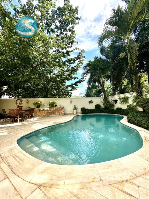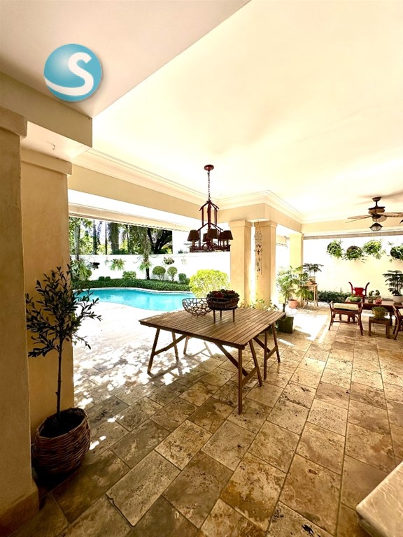Vendo amplia casa de proyecto con excelentes espacios y patio con piscina: Detalles del proyecto: -2 casas -Ubicadas en una calle sin salida con excelente vecinos -Portón electrico -Planta electrica -Cisterna -2 bombas de agua -Jardín Detalles de la casa: -Pisos de Marmol -Madera preciosa Primer nivel -550 m2 de construcción -650 m2 de terreno -Marquesina para 3 parqueos -Entrada -Recibidor -Estudio -Oficina amplia (pudiera ser 5ta habitación) -Sala -Medio baño de visita (con prevision para baño completo) -Comedor separado -Cocina fría -Cocina caliente -Cuarto de servicio + baño con acceso independiente -Area de lavado -Terrazas techada -Patio -Piscina Segundo nivel: -Estar amplio -4 habitaciones + 4 baños -Cada habitacion secundaria con walk-in closet -Habitación principal: 2 walk-in closets Costo de mantenimiento: RD$11,500 gastos comunes RD5,000 gastos residencial Cuesta Hermosa 2