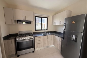 Tu nuevo hogar en Punta Cana te espera! 5min de Downtown Punta Cana. Alquila esta comida casa en complejo privado con todo lo que necesitas: 2 habitaciones 2 baños + baño de servicio Línea blanca incluida Vive con todas las comodidades: Piscina Gimnasio Seguridad 24/7 Doble acceso A solo 5 minutos de Downtown Punta Cana Renta mensual: US$1,000 con mantenimiento incluido Perfecto para vivir tranquilo, seguro y cerca de todo.