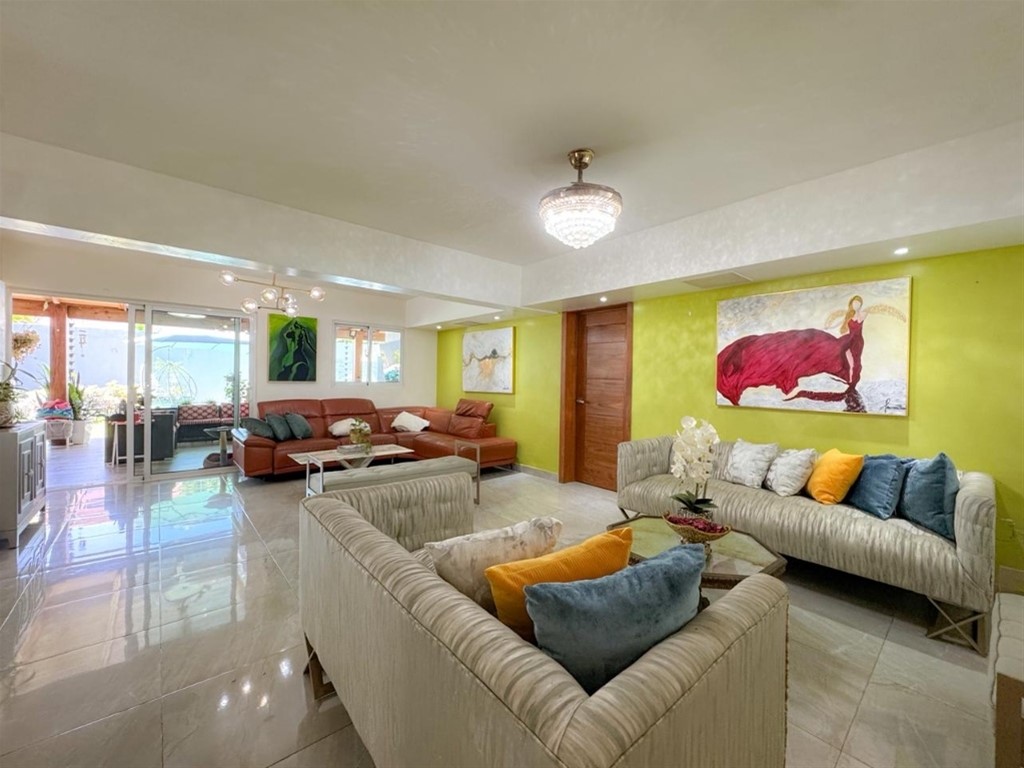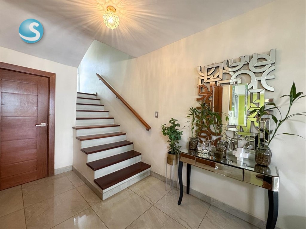 Espectacular casa en venta ubicada en El Millon Características de la casa 2 niveles 4 habitaciones C/U con su walk in closet y baño 4 baños 3 medio baños 2 salas Comedor Cocina Closet de ropa blanca Terraza techada de 60 mts Jardín Recibidor Locker Patio de 150 mts Área de lavado Habitación de servicio 4 parqueos paralelos, 2 techados y 2 destechados Terminaciones Pisos en porcelanato Madera de roble Jambas Tope de cocina en granito Cornisas en yeso Inversor Intercom Cuenta con: Piscina y jacuzzi con cascada Cuarto de oficina exterior con baño Portón eléctrico Luz 24 hrs Cámaras de seguridad Precio de venta US$600,000