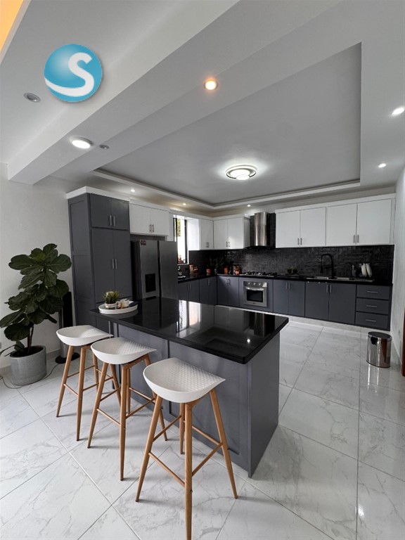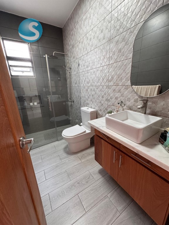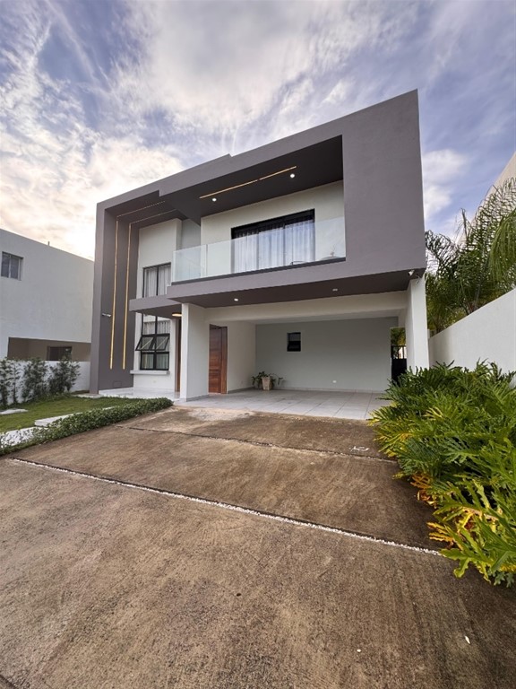 Casa Moderna en Residencial Privado – Gurabo, Santiago Descubre esta elegante propiedad ubicada en un proyecto cerrado con seguridad 24/7. Diseñada para quienes buscan confort, estilo y un entorno familiar seguro, esta residencia ofrece espacios amplios, acabados de calidad y una distribución moderna. Inversión y Dimensiones Precio: RD$24,500,000 Solar: 306.21 m² Construcción: 259.75 m² Distribución Primer Nivel Marquesina para 4 vehículos (2 bajo techo) Sala y comedor en concepto abierto Medio baño para visitas Cocina amplia con isla Área de lavado Cuarto de servicio con baño Patio privado Segundo Nivel Habitación principal amplia con baño y vestidor Dos habitaciones secundarias con baño común Terraza al aire libre Características Generales Pisos en porcelanato Puertas, gabinetes y closets en roble Tope del desayunador en granito natural Cisterna Techos en sheetrock con iluminación LED Calentador de gas Seguridad 24/7 Entorno familiar, tranquilo y bien ubicado