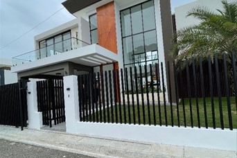 Llanos de Gurabo, Santiago de los Caballeros Precio: US$535,000 354 m² de solar 308 m² de construcción Distribución: Primer nivel: • Jardín • Marquesina para 2 vehículos • Recibidor • Sala de estar • Medio baño para visitas • Cocina fría • Cocina caliente • Área de lavado • Habitación de huéspedes Segundo nivel: • 3 habitaciones, cada una con baño, walk-in closet y balcón • Sala familiar Casa moderna y funcional, ideal para quienes buscan confort, amplitud y una ubicación privilegiada en una de las zonas más exclusivas de Santiago.