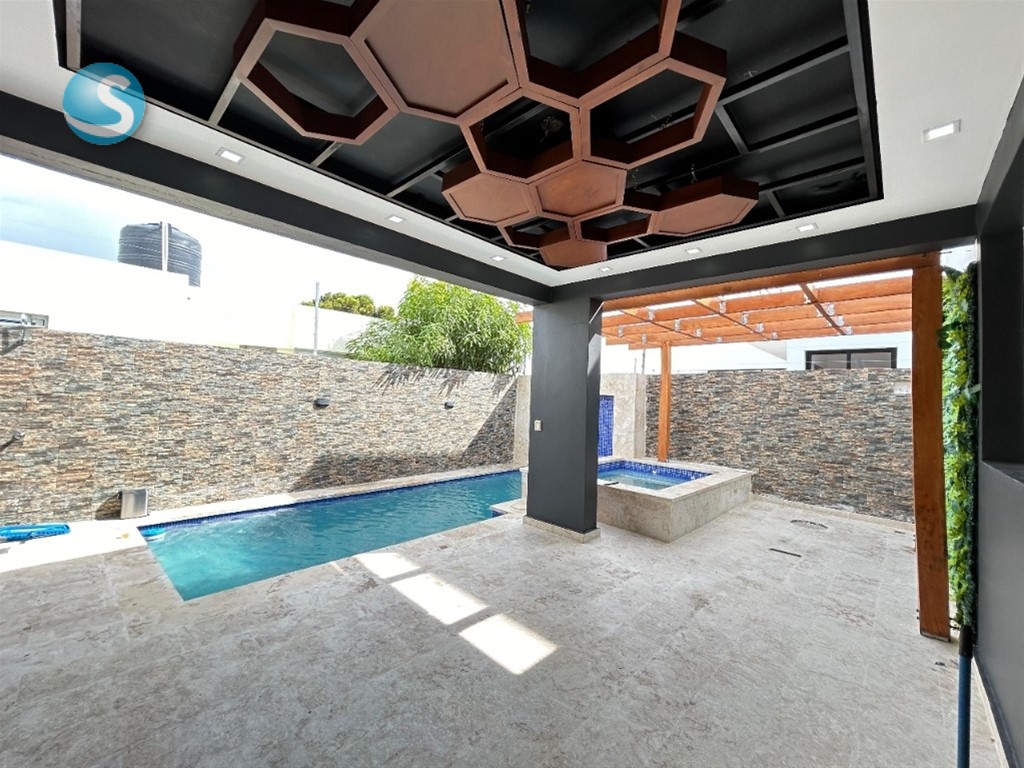 Casa Majestuosa en VENTA y alquiler en Gurabo, Santiago de los Caballeros, República Dominicana. Ubicada en urbanización cerrada con seguridad 24/7, esta propiedad combina elegancia, confort y exclusividad. 250 m² de construcción | 383 m² de solar Distribución y amenidades: Amplia sala Comedor elegante Cocina fría y cocina caliente Área de lavado Terraza exterior Piscina privada Jacuzzi Marquesina doble 3 habitaciones, todas con baño y clóset (principal con walk-in closet y baño privado) ? Incluye línea blanca: • Estufas • Horno • Extractores • Aire acondicionado Precio de venta: RD$23,000,000.00 En alquiler: US$1,400.00 / mes Vive con estilo, seguridad y confort en una de las zonas más exclusivas de Santiago. ¡Tu nuevo hogar te está esperando!
