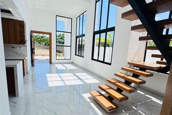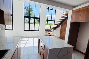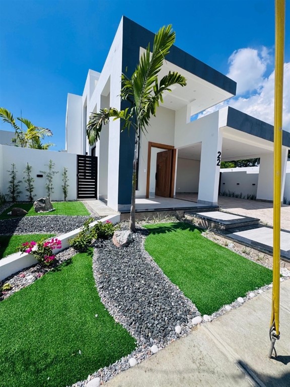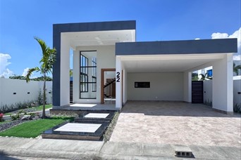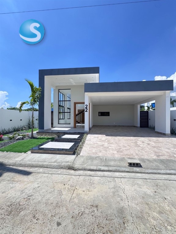 Casa de 2 niveles en Gurabo Proyecto cerrado con seguridad 24/7 Terreno: 315.06 m² Construcción: 240.25 m² 3 habitaciones 2 ½ baños 2 clósets regulares 1 walk-in closet Segundo nivel con terraza y ½ baño Marquesina doble Precio: USD 290,000