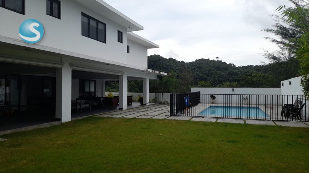 Hermosa Casa en Cerros de Arroyo Hondo Solar 1040 m2 Casa de aproximadamente 780 m2 construidos Marquesina para 6 + vehiculos ( 3 techados) Recibidor doble altura Sala Estudio con baño completo Comedor formal Cocina fria , con comedor Cocina caliente Amplia despensa Area lavado Hab. De servicio Amplia terraza, con BBQ, meseta Baño completo area piscina Piscina de ( 9 x 4 m aprox) Cuarto de planta electrica, equipos de piscina y bodega 5 habitaciones, todas con baño y walking closet Amplio estar familiar 11 k de paneles solares con contador bidireccional edesur