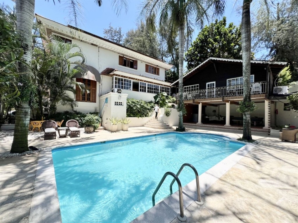 Ubicado dentro del residencial cerrado Isabel Villas. Con acceso a la Casa Club con piscina, gimnasio y campo de golf. Se vende una casa principal 400 m2 construccion mas una casa de huesped en un solar de 825 m2 Caracteristicas Casa Principal de 3 niveles: 3er nivel: 3 habitaciones con sus baños family room 2ndo nivel: 3 salas 2 comedores amplia cocina terraza techada 1er nivel: Recibidor marquesina para 4 vehiculos area lavado 2 cuartos de servicio Caracteristicas Casa de Huesped de 2 niveles: 1 habitacion con su baño y closet terraza techada con bar y area de juegos area de piscina con baño completo La casa tiene: planta electrica paneles solar inversor alarma camaras de seguridad 8 aires acondicionados Venta: US$ 690,000 sin muebles ni equipos Alquiler: US$ 7,000 amueblado ID: EB-DU3099 Para más información y fotografías adicionales, visita nuestro portal. https://www.tropical-livingdr.com/property/elegante-casa-con-piscina-privada-isabel-villas?agent=oficinat_1