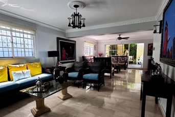 Agente: MayKa Estrella / franco Contacto: 849-856-5217 Propiedad: Casa Sector: La Castellana Parqueos 2 techados Metraje: 340 Metros de Precio de Venta: US$ 570,000 Precio Alquiler : USD5,000.00 Características Generales: Uso: Vivienda o negocios (a evaluar) 300.12 m2 2 Niveles Cisterna Cerco eléctrico Portón eléctrico Primer Nivel: Marquesina para 4 vehículos (2 techados) Jardín Patio Recibidor Baño de visita Terraza techada 3 Salas Comedor Cocina fría con desayunador Cocina caliente Habitación de servicio Área de lavado Segundo Nivel: 3 Habitaciones 2 vestidores + 2 clósets 3 Baños Family room Terraza techada (puede funcionar como estudio) Terraza destechada
