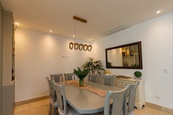 Residencia en Circuito Cerrado – Santiago Elegante y amplia casa ubicada en un exclusivo circuito cerrado, diseñada para ofrecer confort, seguridad y una experiencia residencial de alto nivel. Con acabados de primera, espacios climatizados y una distribución funcional, esta propiedad es ideal para familias que buscan privacidad y calidad de vida. Datos Generales Terreno: 371.27 m² Construcción: 332.6 m² Precio: US$950,000 (se aceptan ofertas) Amenidades y Facilidades del Proyecto Circuito cerrado Vigilancia 24/7 Planta eléctrica full Cisterna Gas común Residencia completamente climatizada Screens instalados en toda la casa Distribución de la Propiedad Primer Nivel Recibidor Baño de visitas Sala Comedor Terraza con screens y puertas de cristal Amplia cocina con desayunador, estufa y horno empotrados Área de lavandería y cocina caliente Cuarto de servicio Estacionamiento para 4 vehículos Segundo Nivel Tres habitaciones, cada una con baño y walk-in closet Sala de estar familiar