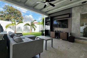 Propiedad unifamiliar de alto nivel ubicada en un exclusivo residencial cerrado de baja densidad, compuesto por solo 7 unidades, en el sector Las Carmelitas, una de las zonas con mayor estabilidad y valorización residencial en Santiago. Características generales: Solar: 644 m² Construcción: 520 m² Diseño funcional que prioriza amplitud, privacidad y una adecuada distribución entre áreas sociales, familiares y de servicio Distribución interior: ?? Segundo nivel: 4 habitaciones, cada una con baño integrado y walk-in closet Family room de uso privado Oficina independiente, ideal para trabajo desde casa. ?? Primer nivel: Recibidor formal Medio baño para visitas Doble sala, permitiendo ambientes sociales independientes Cocina fría y cocina caliente Área de lavado independiente Cuarto de almacenamiento Habitación de servicio con baño Área exterior: Terraza doble techada, ideal para actividades sociales Piscina privada Baño completo exterior Espacio diseñado para entretenimiento sin interferir con las áreas internas
