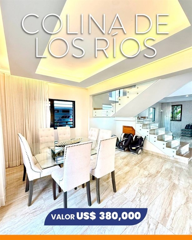 Hermosa casa de 3 niveles en Colinas de Los Ríos Tu nuevo hogar te espera en una de las zonas más exclusivas y tranquilas de Santo Domingo. Ubicada en residencial cerrado, con estilo moderno, amplios espacios y diseñada para brindar comodidad, privacidad y un estilo de vida premium. Características destacadas: • 3 niveles con diseño moderno y espacios abiertos • 3 habitaciones, cada una con walking closet • 3 baños completos + 2 baños de visitas • Cocina caliente y cocina fría • Estudio con terraza destechada • Family room ideal para compartir en familia • Balcón con vista al parque • Patio de 50 m² • 2 lockers • Shutters • Llavín inteligente • Marquesina para 3 vehículos • Gas individual • Cisterna y pozo tubular Monto de mantenimiento: RD$3,500 Precio de venta: US$380,000