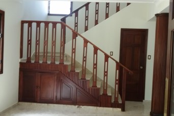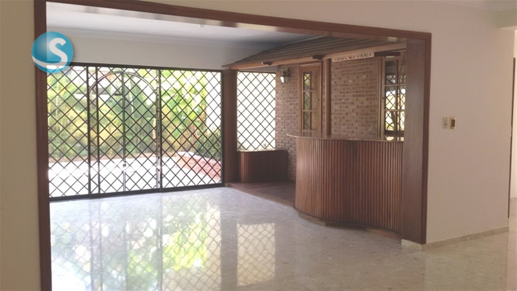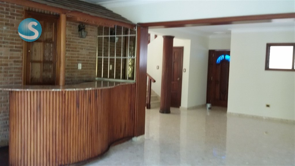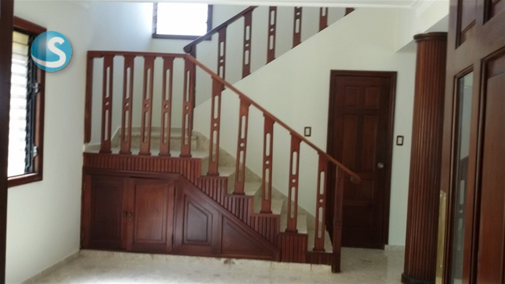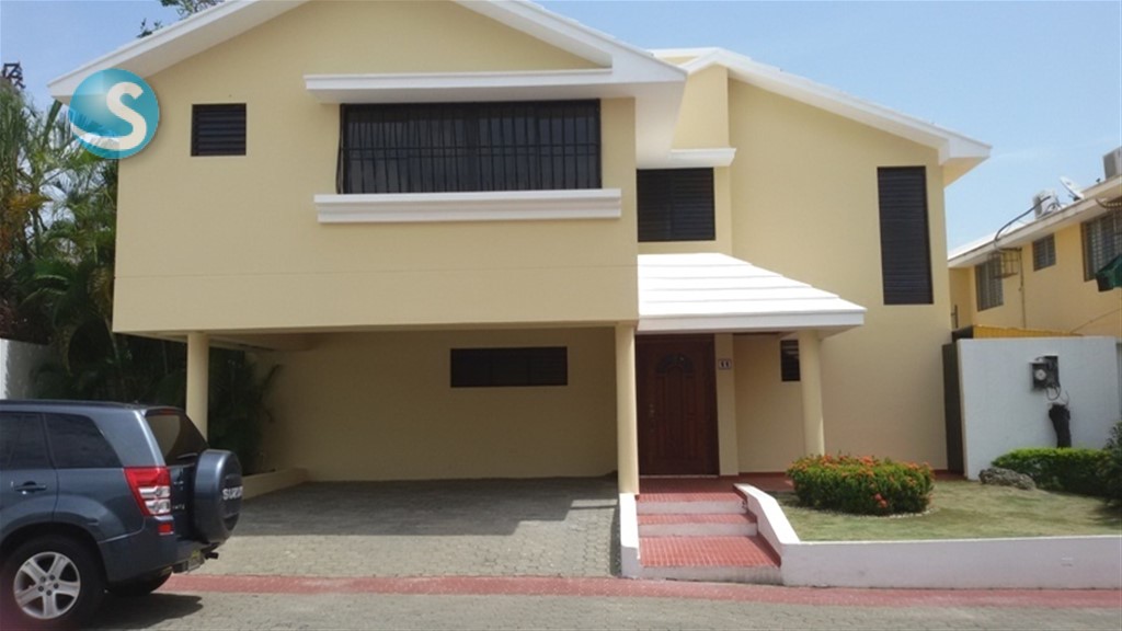 Primer nivel: Jardín, marquesina doble (podría caber un tercer vehículo pequeño), recibidor, sala, comedor, estar con mueble bar en caoba, medio baño, cocina, cuarto de servicio con baño, área de lavado, patio con jacuzzi con sus equipos. Segundo nivel: Tres (3) dormitorios, 3 baños, estar familiar, estudio, cisterna con su bomba, verjas, hierros en puertas y ventanas, jambas en puertas y ventanas en madera caoba, ventanas en cristal corredizas, todas las puertas y gabinetes en caoba y pisos en chapa de mármol, con un área de construcción de 302 metros cuadrados y 355.22 metros cuadrados de solar. El precio incluye el mantenimiento del residencial que corresponde a pago de los empleados, de la luz del área común, y la limpieza de las áreas comunes. El agua y la basura se pagan de manera independiente por cada vivienda.