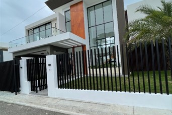 Casa Moderna en Llanos de Gurabo Santiago de los Caballeros Residencia elegante y funcional, diseñada para ofrecer confort, amplitud y una ubicación privilegiada en uno de los sectores más exclusivos de Santiago. Detalles Generales Precio: US$535,000 Solar: 354 m² Construcción: 308 m² Distribución de la Propiedad Primer Nivel Jardín frontal Marquesina para 2 vehículos Recibidor Sala de estar Medio baño para visitas Cocina fría Cocina caliente Área de lavado Habitación de huéspedes Segundo Nivel Tres habitaciones, cada una con baño privado, walk-in closet y balcón Sala familiar Descripción Casa moderna y funcional, ideal para quienes buscan una residencia con diseño contemporáneo, amplios espacios y un entorno exclusivo en la ciudad de Santiago.