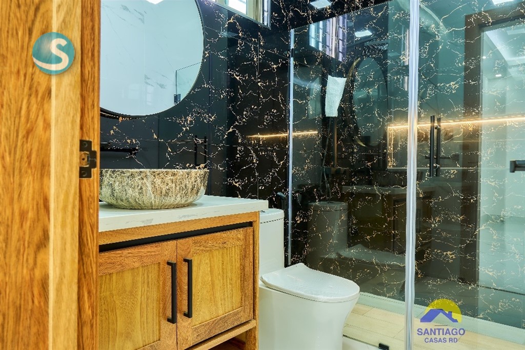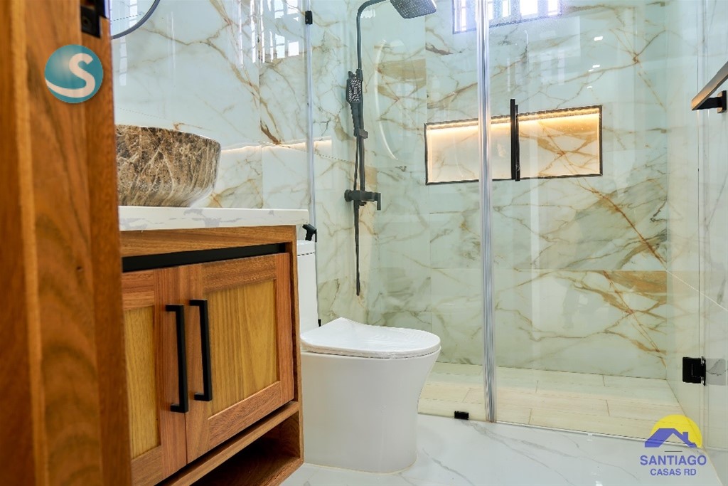 CASA EN VENTA – LLANOS DE GURABO Proyecto cerrado | Santiago, RD Vive en una casa de ensueño en una de las zonas más exclusivas de Santiago. Seguridad, elegancia y diseño moderno en cada detalle. Características Generales: • Solar: 300 m² • Construcción: 240 m² • Proyecto cerrado con acceso controlado y seguridad 24/7 Distribución de Lujo: • Galería de doble altura • Recibidor, sala y comedor con concepto abierto • Cocina fría con isla y cocina caliente • 4 dormitorios amplios • 4.5 baños • Área de lavado y closet de ropa blanca • Terraza y patio estilo español • Marquesina doble Detalles y Terminaciones Premium: • Diseño minimalista y estructura antisísmica • Altura de techos de 3.10 m • Ventanas P-92 y madera de roble brasileño • Iluminación LED y preinstalación de aire acondicionado y cámaras • Intercom, cisterna, tinaco y calentador de agua • Sheetrock en techos y jardinería ornamental Precio: RD$21,500,000 Opciones disponibles con uno o dos niveles. Piscina opcional.