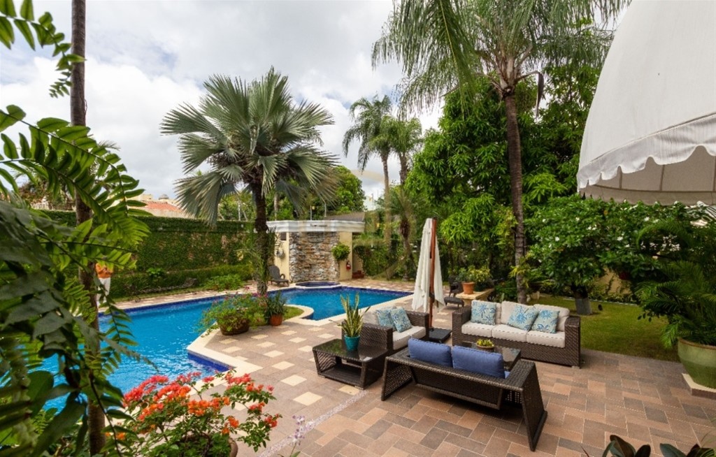 Magnífica casa con terminaciones clásicas, con un diseño imponente tanto en el exterior cómo el interior. en ubicación prestigiosa. Tipo: Casa Ubicación: Los Cacicazgos Construcción: 850m2 Terreno: 1325m2 Habitaciones: 5 Baños: 7 Características 3 Salas de estar Todas las habitaciones tienen walkin closet, baño y balcón Amplio parqueo Family room Estudio o oficina Comedor Cocina fría y caliente 3 habitaciones de servicio Hermoso Jardín Piscina Jacuzzi Gazebo Terraza Salón exterior que se puede convertir en otro estudio o gimnasio PRECIO DE VENTA: US$2,500,000