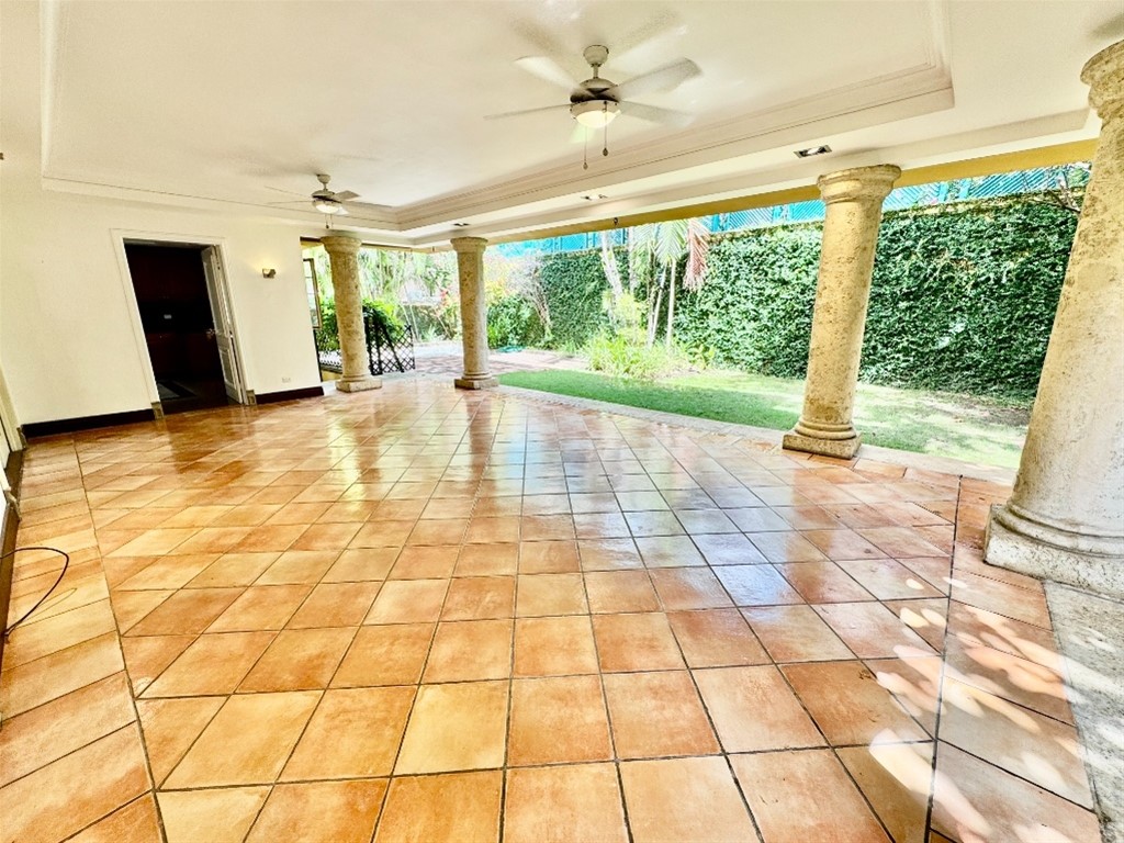 ** en residencial cerrado de 6 casas ** Casa de 3 niveles 750 m2 construccion Planta media: RECIBIDOR, SALON COMEDOR, ESTUDIO, SALON PRINCIPAL DOS AMBIENTES, COCINA, CUARTO DESPENSA, BAÑO DE VISITAS, TERRAZA Y JARDIN CON JACUSSI con calentador EXTERIOR 8 PERSONAS Planta arriba: AREA FAMILIAR, CUARTO ROPA BLANCA, HABITACIÓN PRINCIPAL CON DOBLE VESTIDOR Y DOBLE BAÑO CON JACUSSI Y DUCHA INDEPENDIENTE, 3 HABITACIONES CON BAÑO INDEPENDIENTE Y CUARTO VESTIDOR. Planta Baja: DOBLE PARQUEO CERRADO Y CUBIERTO PARA 3 VEHICULOS GRANDES Y 3 EN LA ENTRADA. CUARTO ALMACEN 30M2, TENDEDERO CUBIERTO, CUARTO JACUSSI, BAÑO JARDINERO, ZONA DE SERVICIO DOBLE CON SU BAÑO, COCINA INDEPENDIENTE, AREA DE LAVADO Y GIMNASIO 30 M2 . Memoria de calidades: suelos planta calle y primera en tarima macizaipe , cocina y baños granito, puertas madera caoba maciza lacada, estudio íntegramente forrado en caoba con mueble librería empotrado, escalera coba maciza , ventanales terrazas y ventanas tipo Pella antihuracán con triple vidrio y cierres seguridad. Cocina amueblada con mobiliario roble y electrodomésticos acero inoxidable marca Wiking (cocina gas, horno, campana, microondas, doble nevera con congelador) Baños mármol travertino amueblados y completamente equipados. Vestidores forrados en cedro macizo y complétamente equipados. Cocina de servicio y área de lavado equipada con cocina gas, nevera, lavadora Otros equipamientos: Inversor 10KW, planta depuradora privada, bomba y depósito agua independiente de seguridad, aires acondicionados por ducto independientes en todas las áreas incluída cocina principal, alarma, central telefónica digital con extensiones en todas las áreas incluyendo 6 teléfonos digitales e interfono, puertas automáticas de garaje, focos halógenos empotrados en terraza, recibidor, comedor, cocina, iluminación jardín, jardineras entrada, tanque gas, etc. Facilidades condominio: Planta eléctrica generadora insonorizada, agua depurada y presurizada, jardinería común, seguridad 24 horas, jardinero. Precio alquiler: US$ 7,000, incluyendo mantenimiento del condominio, aires acondicionados y linea blanca ID:EB-UB0170 Para más información y fotografías adicionales, visita nuestro portal. https://www.tropical-livingdr.com/property/alquilo-lujosa-casa-de-4-habitaciones-en-los-cacicazgos?agent=oficinat_1