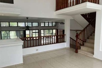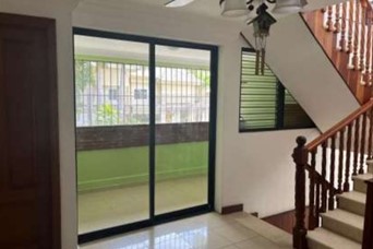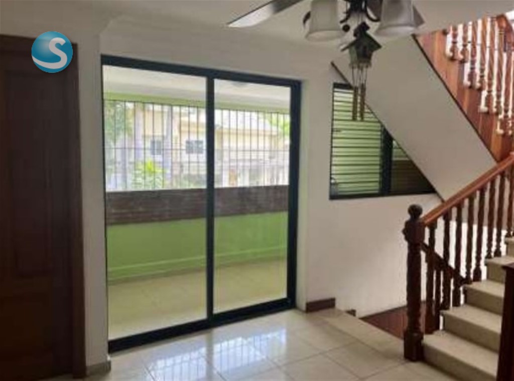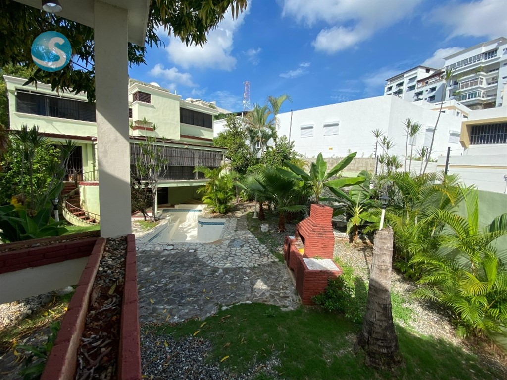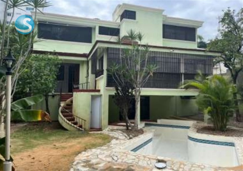 Vendo casa en Los Cacicazgos Sótano: Consta de la siguiente distribución: sala estar, habitación con su baño, revestido de cerámica en piso y paredes, lavamanos ovalados y aparatos sanitarios standard, tiene su closet, las ventanas de la habitación son de celosías color bronce, marquesina, techada con capacidad para tres vehículos, cocina, meseta de marmolite y fregadero de acero inoxidable con salida puerta corrediza color bronce hacia el patio exterior- piscina, piso en cerámica. Primer Nivel: Vivienda Familiar Consta de la siguiente distribución: entrada principal con escalinata de mármol puerta doble en madera de caoba, recibidor, sala principal, sala estar, 1/12 baño, con cerámica en piso y paredes, lavamanos ovalados y aparatos sanitarios standard, terraza, comedor principal, comedor secundario, área de lavado, cocina con gabinetes y despensa en caoba, meseta de marmolite y fregadero de acero inoxidable ventanas francesas vidrio-madera en caoba, escalera en mármol liso y cambios de niveles en mármol, revestimiento en piso de cerámica, techo revestimiento de yeso cornisa en yeso ventanas en vidrio corrediza y celosías. Segundo Nivel: Vivienda Familiar Consta de la siguiente distribución: conexión con el 3er nivel escalera con revestimiento de mármol habitación principal con vestidor en caoba, baño con revestimiento de cerámica, dos habitaciones cada una con su closet y baño revestido de cerámica, balcón, closet de ropa blanca en revestimiento de caoba, doble altura en la sala. Está construido con columnas, vigas y losa de techo en hormigón armado, muros de blocks pañetados. US$795,000