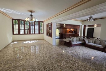 ¡Impresionante Casa de 3 Niveles en Los Cacicazgos! Ideal para familias que buscan espacios amplios, y comodidad en una de las zonas más exclusivas de Santo Domingo. Venta: US$1,800,000 Alquiler: US$4,500 Detalles generales: - Solar: 1,200 m² - Construcción: 625 m² - Habitaciones: 5 - Baños: 4.5 - Parqueos: Hasta 10 vehículos Distribución por niveles: Nivel 1: - 2 Salas - Comedor - Estudio - Recibidor - Bar - 1 Habitación con baño - Cocina caliente y fría - Área de lavado - 2 Habitaciones de servicio independientes - ?Patio - ?Piscina Nivel 2: - Terraza frontal - 4 Habitaciones (principal con balcón, baño y walk-in clóset) - Biblioteca con balcón - Clóset de ropa blanca Nivel 3: - Estudio - Área común Amenidades terminaciones: - Madera (cedro y caoba) - Pisos en mármol - Jambas en puertas - Sistema de alarma - Panel solar - Bomba de agua Ubicada en Los Cacicazgos, zona tranquila, segura y de alta valorización. KAR. P. y CAR. T.