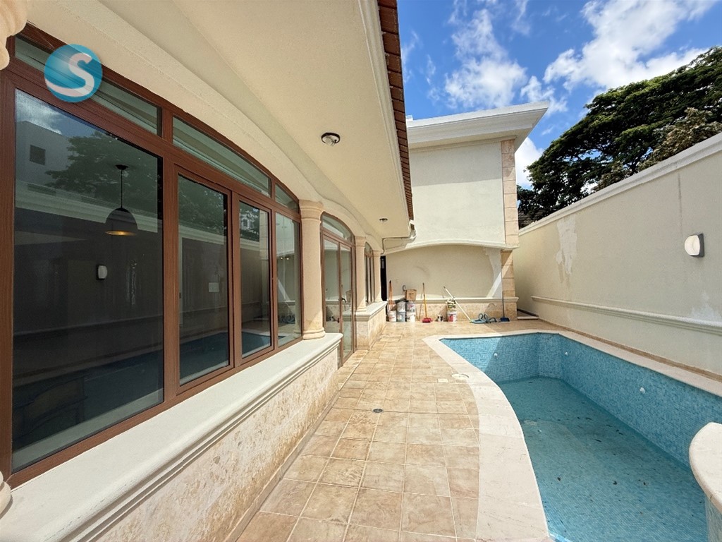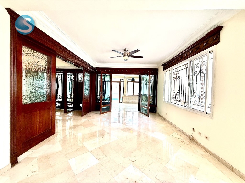 Agente: Fresa Torres/ Myka Estrella Contacto: 809 763 7285/ 849 856 5217 Sector: Los Casicazgo Construcción 600 Metros² Próximo Casa en Alquiler : US$ 5.800 Parqueos 4 techados Los Casicazgo casa de Dos Niveles en Los Cacicazgo , Diseño Clasico, de 4 habitaciones con piscina una distribución funcional, ideal para familias que buscan comodidad y elegancia en un mismo lugar donde la tranquilidad y la calidad de vida se sienten desde el primer instante. Características destacadas: PRIMER NIVEL • Marquesina para cuatro vehículo • Sala • Estudio • Cocina principal iluminada, con tope en granito natural y finos detalles en madera preciosa. • Dos cocinas (fría y caliente), ideales para quienes disfrutan del orden y la funcionalidad. • Cuarto de servicio con baño completo. • Área de lavado amplia y práctica. • Marquesina techada para dos vehículos. • Terraza cubierta, perfecta para reuniones familiares o un descanso al final del día. • Patio • Marquesina 2 vehículos techados • Piscina SEGUNDO NIVEL • 4 habitaciones amplias, incluyendo una habitación principal con walk-in closet totalmente revestido En madera, con divisiones y terminaciones de alta calidad. • Family Rom • Terraza techada tipo estudio