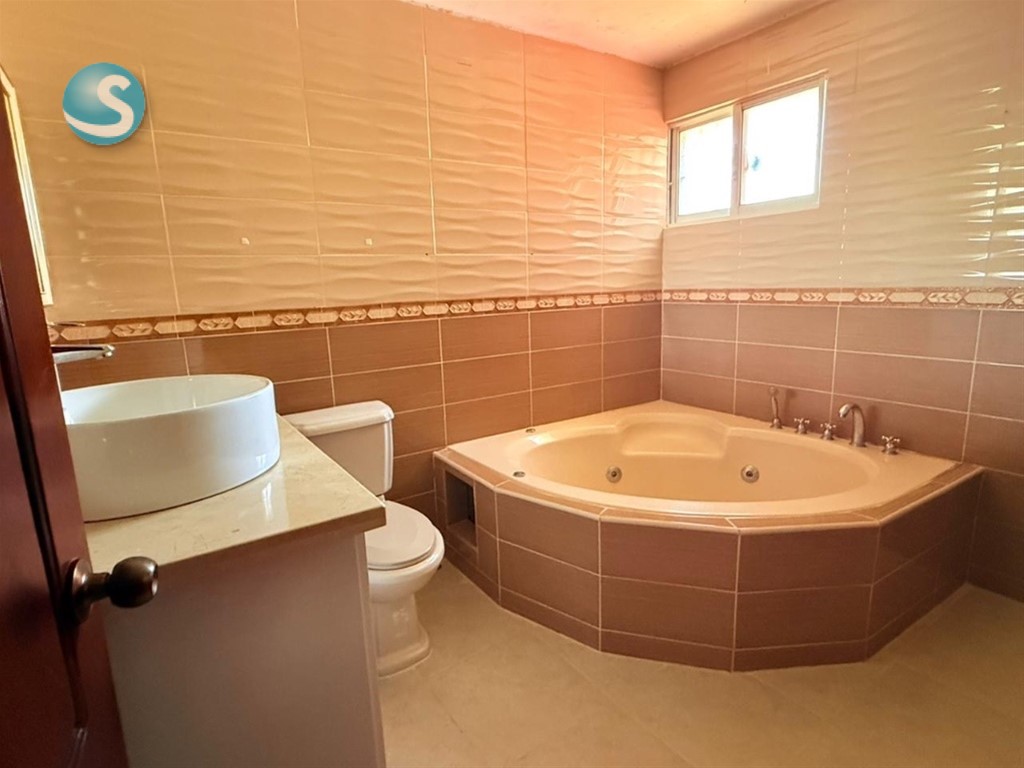 Amplia casa de 2 niveles en Alquiler y venta en Santiago. Solar 219 MTS, 269 MTS de construcción con la siguiente distribución: 4 habitaciones cada una con su baño. Primer nivel: galería, sala, escalera, comedor, cocina con desayunador, medio baño de visitas, dormitorio con su baño, terraza, área de lavado, área para tanques de gas, jardín y marquesina para 3 vehículos. Segundo nivel: Amplia sala de Star con balcón y 3 habitaciones cada una con su baño, La principal con baño y jacuzzi y vestidor. Terminación: Madera en caoba , cisterna , bomba, calentador, hierros de protección y portón eléctrico. Alquiler RD$38,000 Venta RD$13,500,000