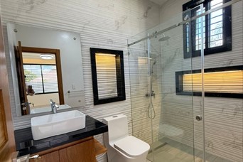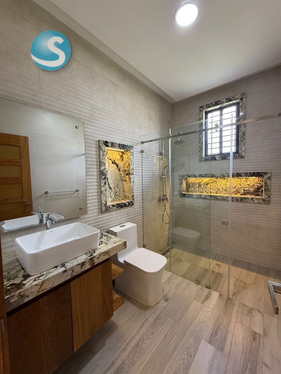 Casa en venta en proyecto exclusivo Construcción: 310 m² Terreno: 440 m² Primer nivel: • 3 habitaciones • Habitación principal con baño y walk-in closet • Baño común para habitaciones secundarias • Medio baño para visitas • Oficina • Sala • Comedor • Cocina • Área de lavado • Habitación de servicio con baño • Amplio patio con kiosko equipado • Marquesina para 4 vehículos Segundo nivel: • Amplia terraza con vista al área verde del proyecto • Bar Precio de venta: US$430,000