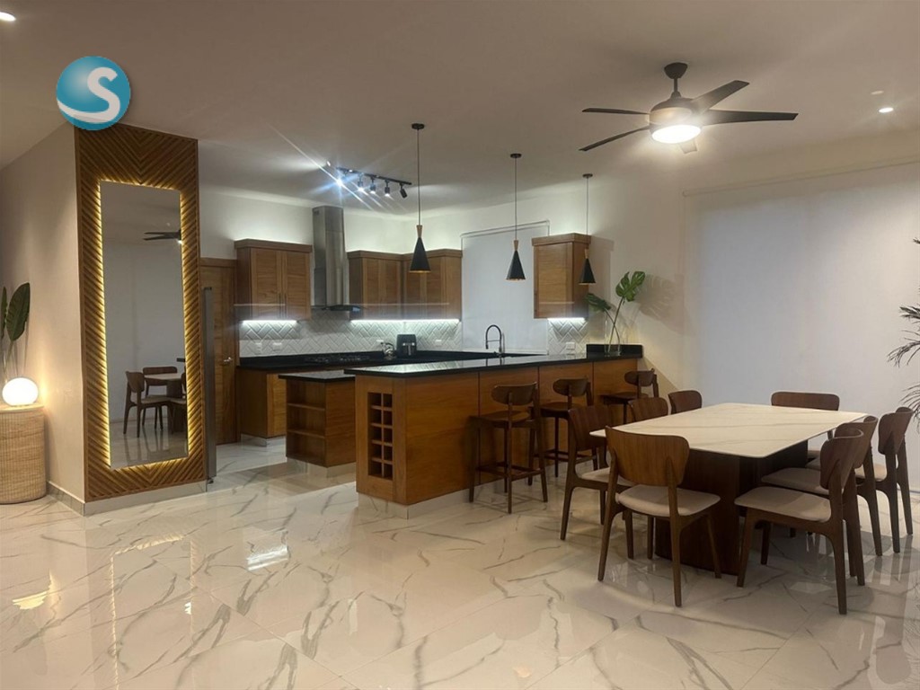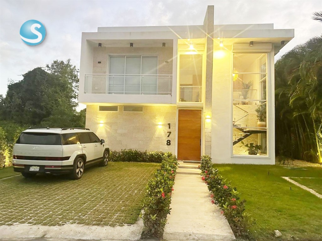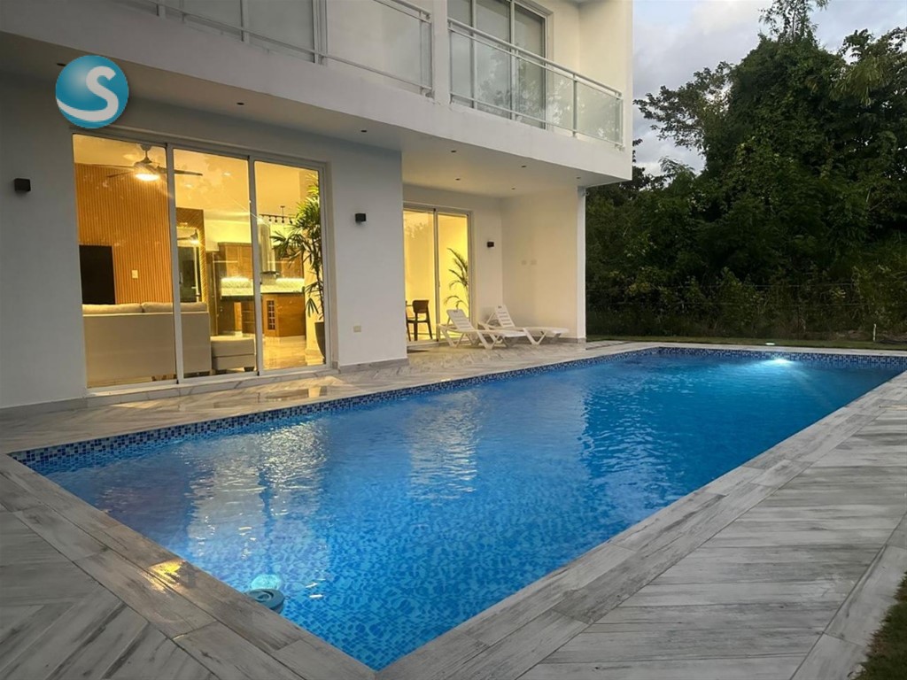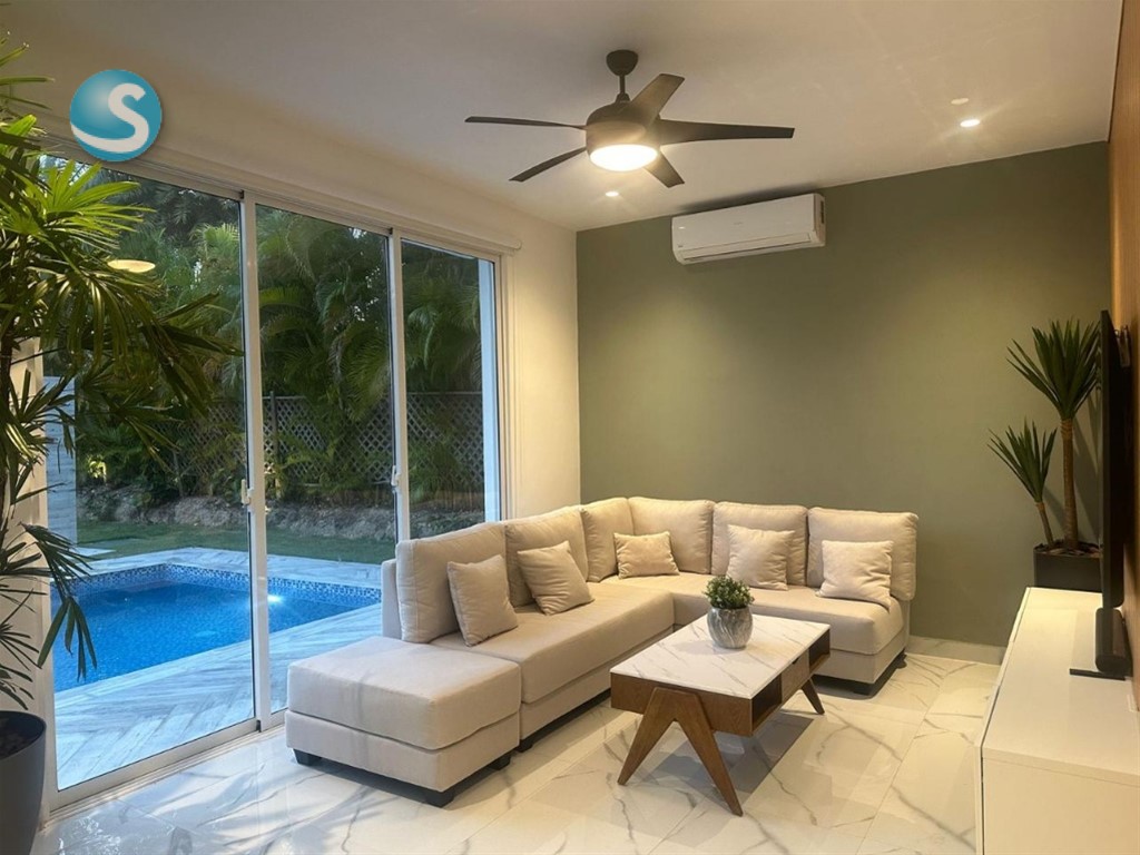 Hermosa villa familiar en Playa Nueva Romana, completamente amueblada y equipada para disfrutar con amigos o en familia. Ubicada en un entorno con acceso controlado, seguridad y múltiples amenidades cercanas, así como todos los servicios disponibles. A 15-20 minutos de Juan Dolio. Distribución espaciosa de 4 habitaciones y 3.5 baños distribuidos en dos niveles, con sala, comedor, recibidor, family y cocina con desayunador y área de lavado. Terraza con piscina, patio y jardín IMPORTANTE: La propiedad ofrece paneles solares que reducen el consumo eléctrico mensual y mínimo 4 parqueos para su comodidad. Acceso a campo de golf, playa, casa club de golf y casa club de playa con restaurantes, supermercado, gimnasio, etc.