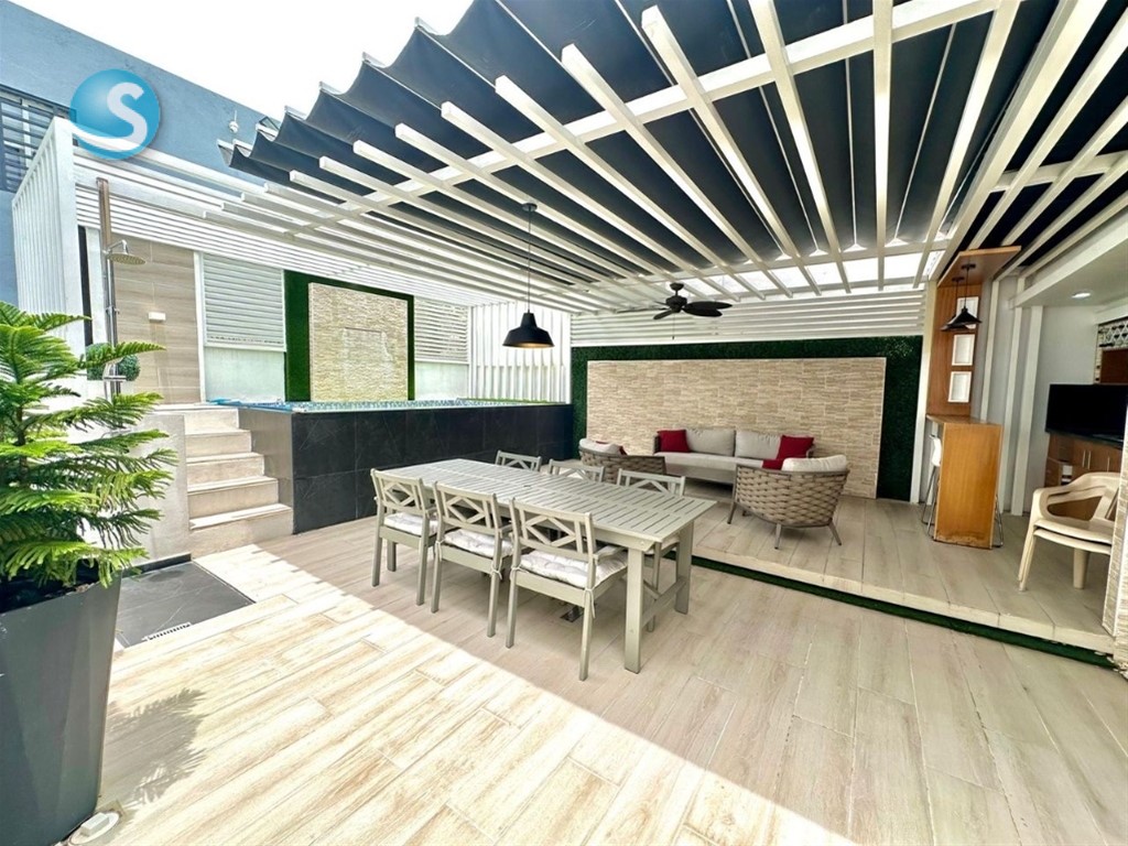 Orquiri Sánchez Se vende lujosa casa en ??Prado oriental a dos esquinas de la Av. Ecológica. Precio: RD$15,500,000.?? DETALLES DEL PRIMER NIVEL: • Balcón • Sala • Comedor • Baño de visitas • Cocina & despensa • Area de Lavado • Cuarto de servicio • 2 parqueos DETALLES DEL SEGUNDO NIVEL: • Sala de estar familiar • 3 Habitaciones (principal con walking, baño y balcon) • 1 Baño TERRAZA INCLUYE TODO EL MOBILIARIO: -Picuzzy -BBQ -Cocina -Juego de sofa de exterior -Juego de comedor de exterior -Banco -Maceteros grandes -Taburete -Kit de limpieza de picuzzy -Covertor de picuzzy -Palillera Automatizada NOTA: • Todos los ventanales y ventanas con barra Malaga • Cerco electrico • Intercom • Camara en toda la casa • Censor de movimiento 1er nivel • Bomba Sumergible • 211 mts2 de solar y 237 mts2 de construcción ?? Precio: RD$15,500,000??