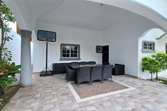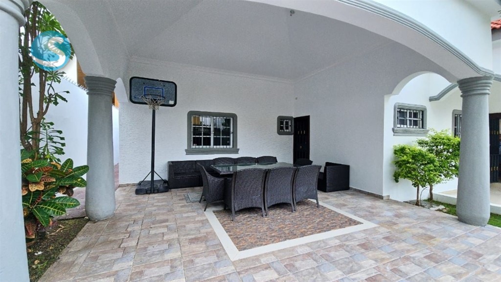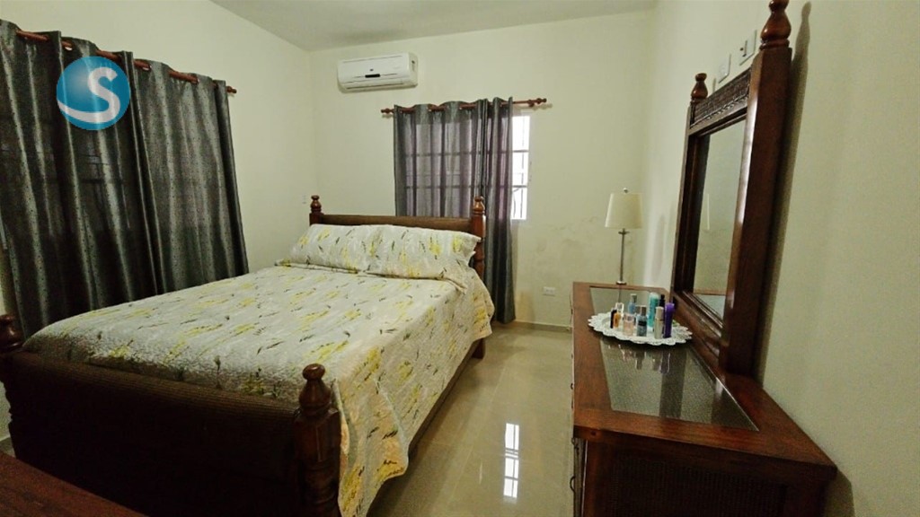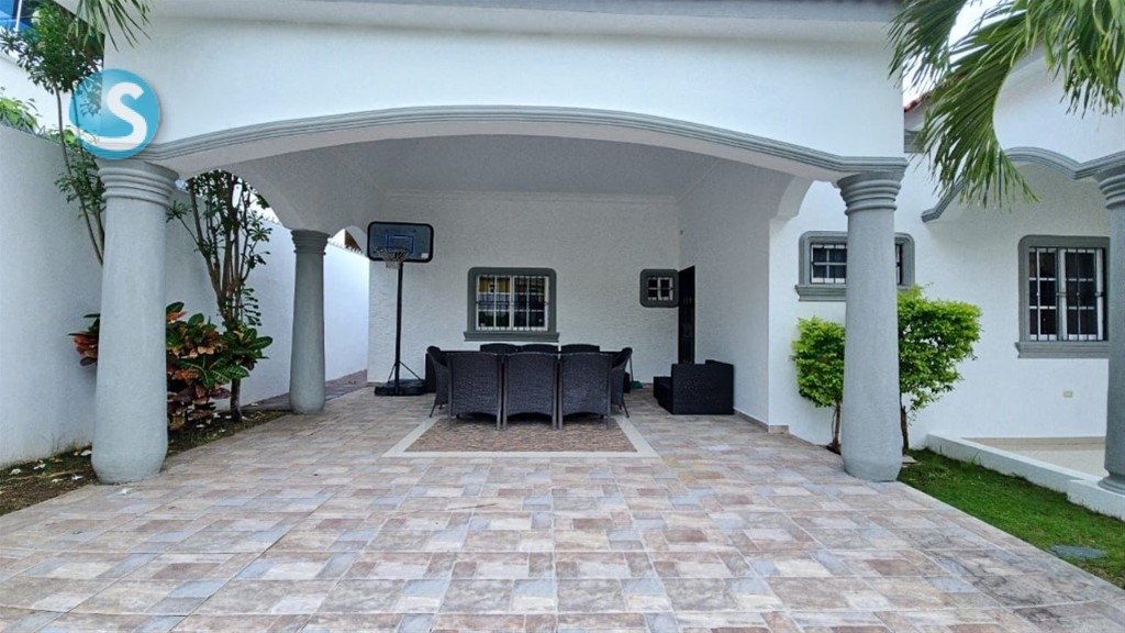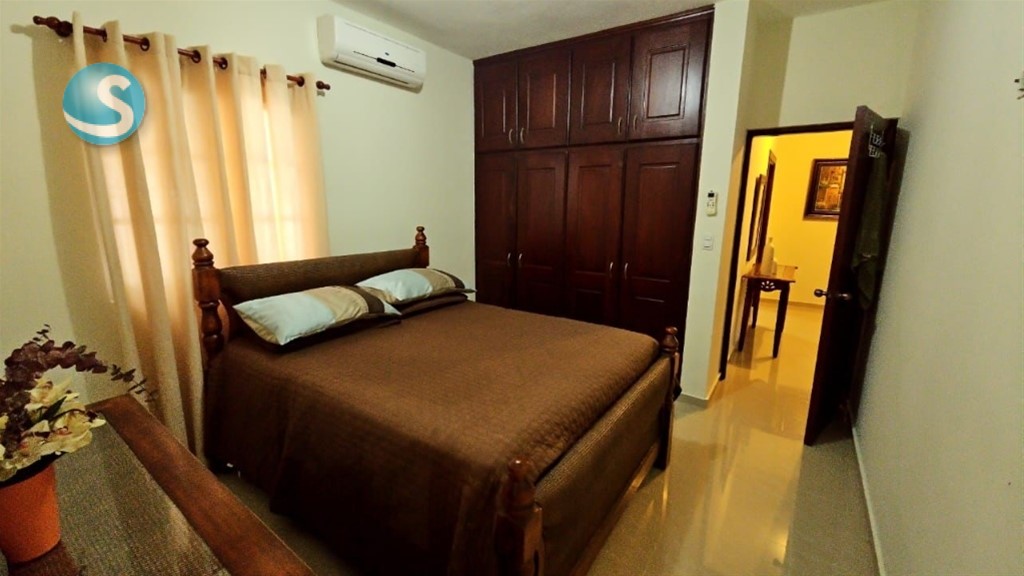 Casas en Ventas en Puerto Plata. Amueblada La casa cuenta con: Solar 306.31 Mts.2 (Tituló deslindado) 185 Mts.2 de construcción. Distribuida de la siguiente manera: – Sala Amplia – Comedor – Cocina de lujo – Tres habitaciones (La principal con baño y vestidor) – Un baño común para las demás habitaciones _ medio baño de visitas – Marquesina para dos vehículos. – Terraza _ Área verde frontal (Jardineria) – Area de Lavado. – Área de patio _Piscina amplia _mucho patio. _Piscina _Acceso al techo Terminación en primera: Madera en caoba en Puerto y cocina Pisos en Porcelanato. Ventanas en aluminio p65 europeo. Nota: Preparada para construir un segundo nivel. Una de las mejores Urbanizaciones para vivir. Precio: 300,000 00 US