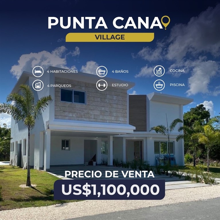 Punta Cana Village (2 Villas Disponibles) 780 mts2 de Solar 500 mts2 de Construcción - 4 Habitaciones con su baño - Family Romo - Estudio - Sala de Estar - 4 Vehículos - Piscina - Sala - Comedor - Cocina - Área de Lavado - Patio - Jardinería - ?Terraza grande Listas para entregar Precio de Venta: USD $1,100,000