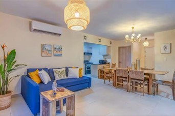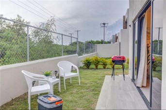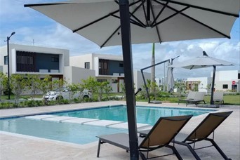 Hermosa villa en la zona de Punta Cana, muy cerca del Downtown. Con 178 metros cuadrados de construcción en dos niveles y 276 metros cuadrados de terreno, esta casa ofrece un espacio amplio y cómodo. Cuenta con 3 habitaciones bien iluminadas, 3 baños modernos, sala, comedor, cocina con desayunador, área de lavado, patio, terraza y 2 espacios para parqueos. Dos habitaciones con sus baños en el primer piso y la habitación principal arriba con su baño y una terraza con pergolado. Ideal para quienes buscan un refugio confortable en un entorno paradisíaco, su ubicación estratégica permite disfrutar de las mejores playas y atracciones turísticas de la zona. Se alquila completamente amueblada y equipada. El proyecto es un residencial cerrado con control de acceso y cuenta con piscina y gimnasio común para los residentes.