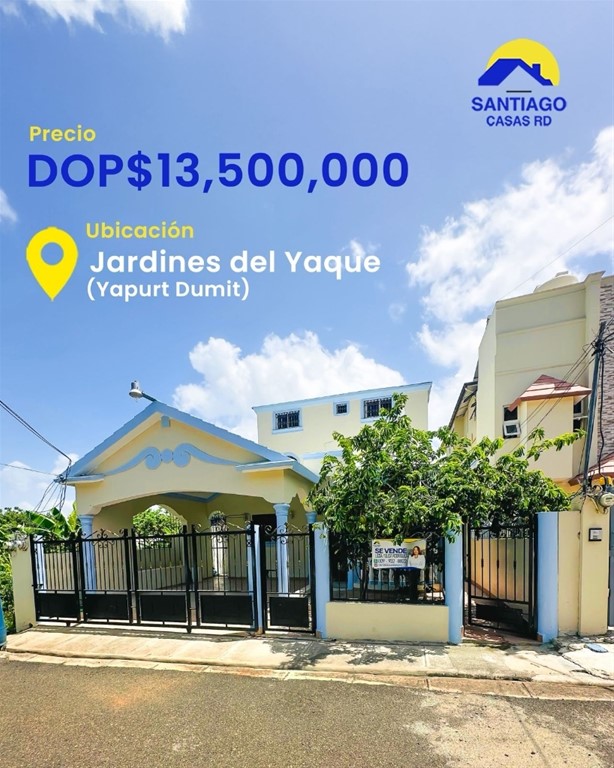 Se Vende – Casa de Dos Niveles con Entradas Independientes en Jardines del Yaque, Yapur Dumit Presentamos esta excelente propiedad ubicada en una de las zonas más tranquilas y accesibles de Santiago: Urbanización Jardines del Yaque, en la prestigiosa Yapur Dumit. Esta casa de dos niveles ofrece entradas completamente independientes, ideal para familias numerosas o como inversión para generar ingresos por alquiler. Primer Nivel: • 3 habitaciones • 2 baños y medio • Habitación de servicio • Sala • Cocina • Comedor • Marquesina doble • Galería • Patio privado Segundo Nivel: • 1 habitación • 1 baño y medio • Sala • Comedor • Cocina • Área de lavado • Terraza abierta Precio de venta: RD$13,500,000 Una propiedad que combina comodidad, privacidad e inversión, con espacios amplios, distribución funcional y excelente ubicación