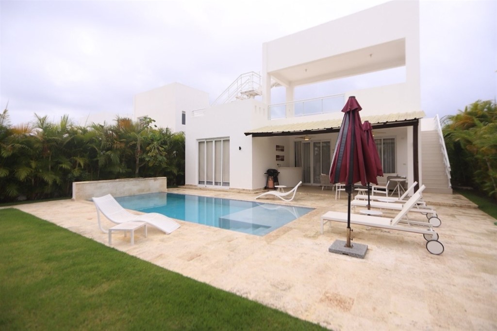Casa de venta en el exclusivo proyecto Sosua Ocean Village, frente a frente al complejo acuatico Santa Fe. - 3 habitaciones - 2 baños - Sala - Comedor - Marquesina - Area de lavado - Patio - Piscina - Bbq - Terraza techada - Terraza destechada - Mirador PRECIO DE VENTA AMUEBLADA USD$480,000.00
