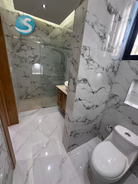 Se vende hermosa casa en Carretera Santiago–Tamboril – $19,500,000 Solar: 412.20 m² Construcción: 220 m² 3 habitaciones 5 baños Balcón Marquesina Terraza techada Patio de 123 m² Cocina moderna Sala y comedor