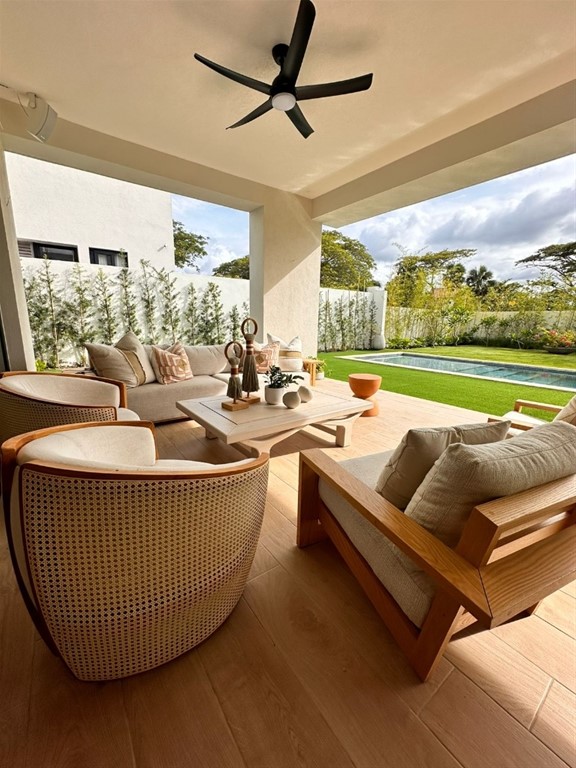 Disfruta esta casa con un estilo único y vive un nuevo estilo de vida. Amenidades: -Seguridad y control de acceso. -Planta full. -Gas común. -Lobby -Gimnasio -Terraza Equipada -Cancha de Futbol Esta exclusiva casa de 2 niveles con 442.22 Mts de construcción cuenta con un diseño moderno y funcional, proporcionando el espacio y las amenidades necesarias para una vida familiar plena. Descripción: -4 amplias habitaciones cada una con su baño y W/C. -4.5 Baños todos con acabados modernos y de alta calidad. -cocina Italiana totalmente equipada, destacando una elegante isla con tope de mármol. -Estufa integrada. -Cocina Caliente, Cocina Fria. -Sistema de aire acondicionado centralizado. -sala -Comedor -Estudio -Amplia Terraza. -un amplio patio que da un toque de naturaleza. -piscina privada. -Estacionamiento para 4 Vehículos. -Sistema de sonido y cámaras.